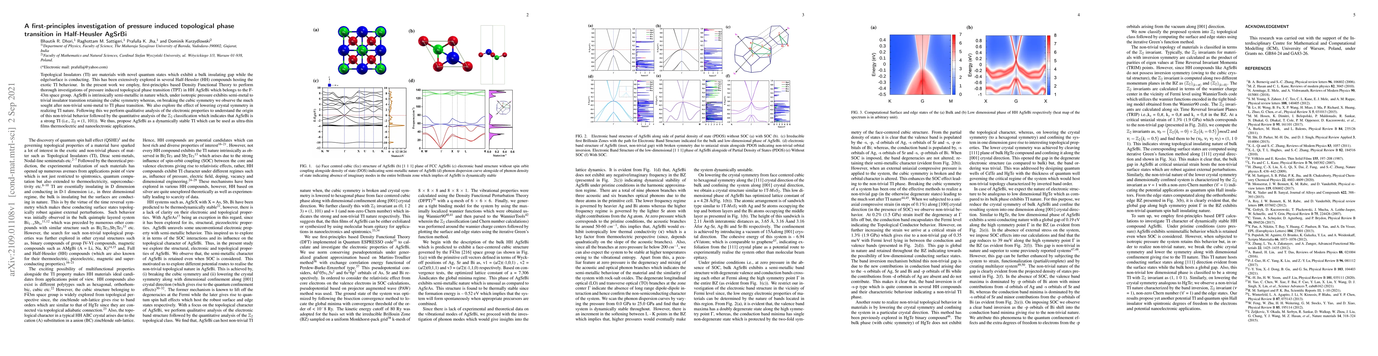 This paper investigates the pressure-induced topological phase transition in the Half-Heusler compound AgSrBi using first-principles Density Functional Theory. The study reveals that AgSrBi undergoes a semi-metal to trivial insulator transition under pressure while maintaining cubic symmetry, but a non-trivial topological insulator phase emerges upon symmetry breaking.