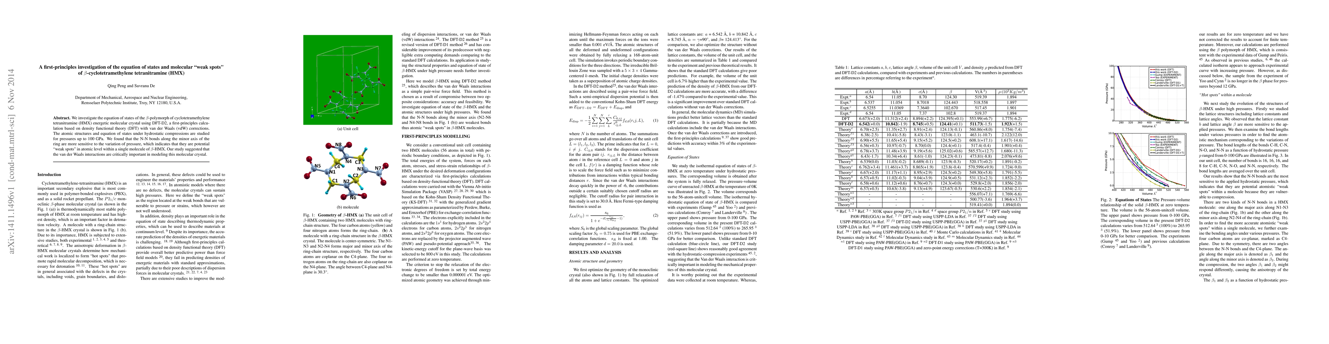 This study uses DFT-D2 to investigate the equation of states for the β-polymorph of HMX under high pressure up to 100 GPa, revealing that N-N bonds along the minor axis are potential "weak spots." The research highlights the importance of van der Waals interactions in accurately modeling HMX energetic molecular crystal.