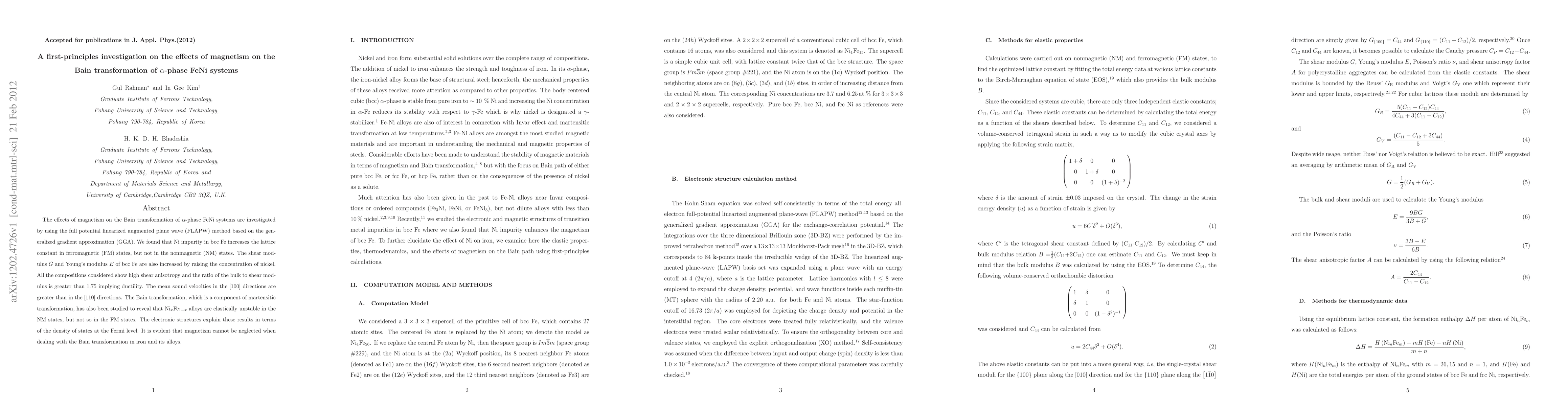 This study uses the FLAPW method to investigate how magnetism affects the Bain transformation in $\alpha$-phase FeNi systems, finding that Ni increases lattice constants and moduli in ferromagnetic states but not in nonmagnetic states, leading to elastic instability in the latter. Magnetism significantly influences the transformation process.