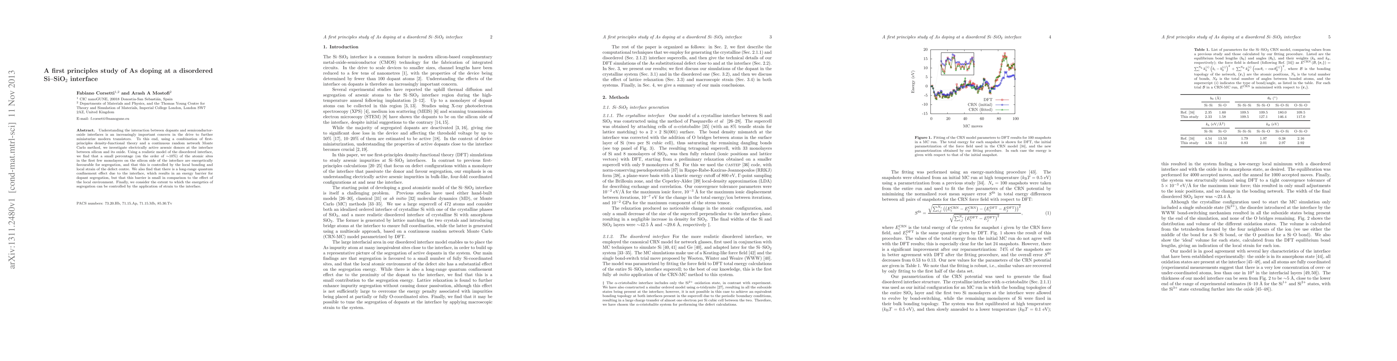 Understanding the interaction between dopants and semiconductor-oxide interfaces is an increasingly important concern in the drive to further miniaturize modern transistors. To this end, using a combination of first-principles density-functional theory and a continuous random network Monte Carlo method, we investigate electrically active arsenic donors at the interface between silicon and its oxide. Using a realistic model of the disordered interface, we find that a small percentage (on the order of ~10%) of the atomic sites in the first few monolayers on the silicon side of the interface are energetically favourable for segregation, and that this is controlled by the local bonding and local strain of the defect centre. We also find that there is a long-range quantum confinement effect due to the interface, which results in an energy barrier for dopant segregation, but that this barrier is small in comparison to the effect of the local environment. Finally, we consider the extent to which the energetics of segregation can be controlled by the application of strain to the interface.