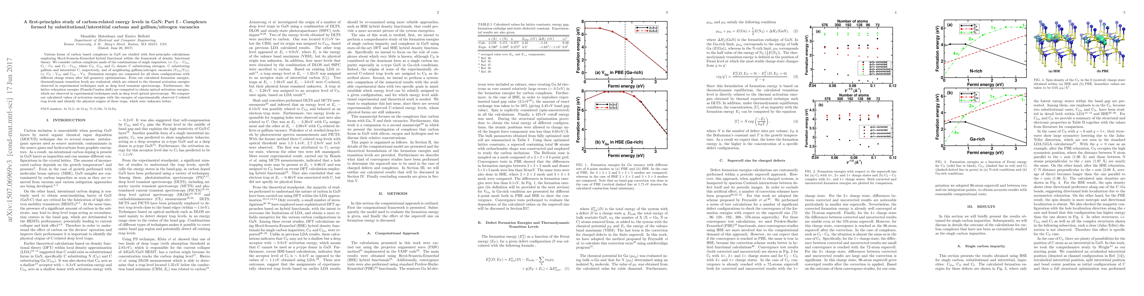This study uses first-principles calculations to investigate various carbon-related complexes in GaN, including substitutional/interstitial carbons and gallium/nitrogen vacancies. The research identifies the thermodynamic and optical activation energies for these complexes, comparing them to experimentally observed trap levels to uncover their physical origins.