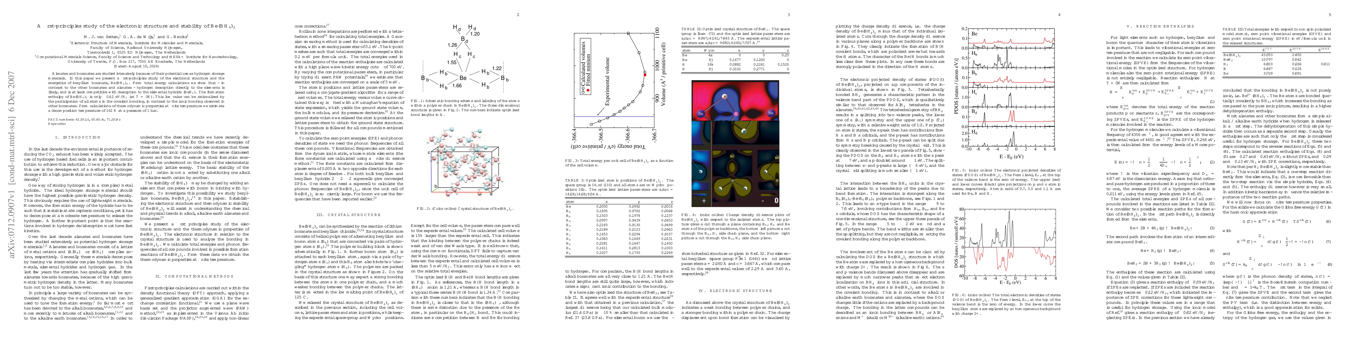 Alanates and boranates are studied intensively because of their potential use as hydrogen storage materials. In this paper we present a first-principles study of the electronic structure and the energetics of beryllium boranate, Be(BH4)2. From total energy calculations we show that - in contrast to the other boranates and alanates - hydrogen desorption directly to the elements is likely, and is at least competitive with desorption to the elemental hydride (BeH2). The formation enthalpy of Be(BH4)2 is only -0.12 eV/H2 (at T=0K). This low value can be rationalized by the participation of all atoms in the covalent bonding, in contrast to the ionic bonding observed in other boranates. From calculations of thermodynamic properties at finite temperature we estimate a decomposition temperature of 162 K at a pressure of 1 bar.