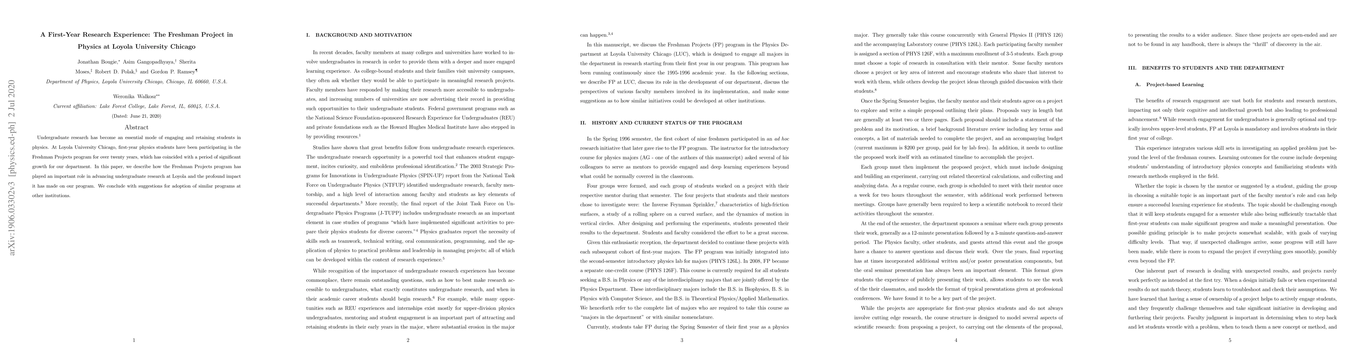 This paper discusses Loyola University Chicago's long-standing Freshman Projects program, which has significantly advanced undergraduate research in physics and positively impacted student engagement and retention. The authors suggest that similar programs could be beneficial at other institutions.