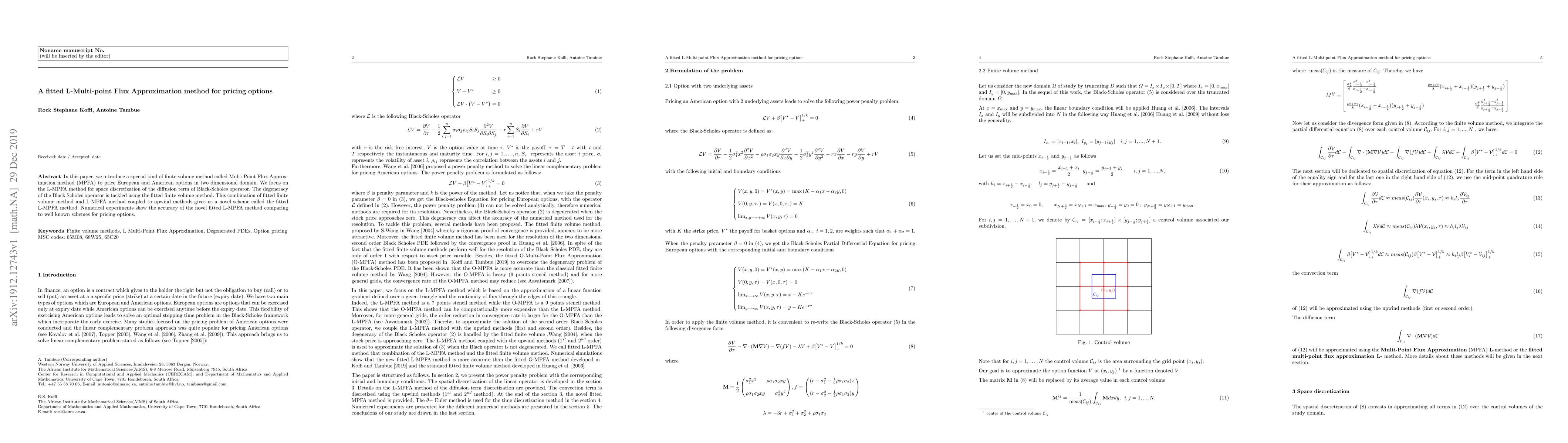 This paper introduces a fitted L-Multi-point Flux Approximation (MPFA) method for pricing European and American options, combining MPFA with a fitted finite volume method to handle the Black-Scholes operator's degeneracy. Numerical results demonstrate the method's accuracy compared to established schemes.