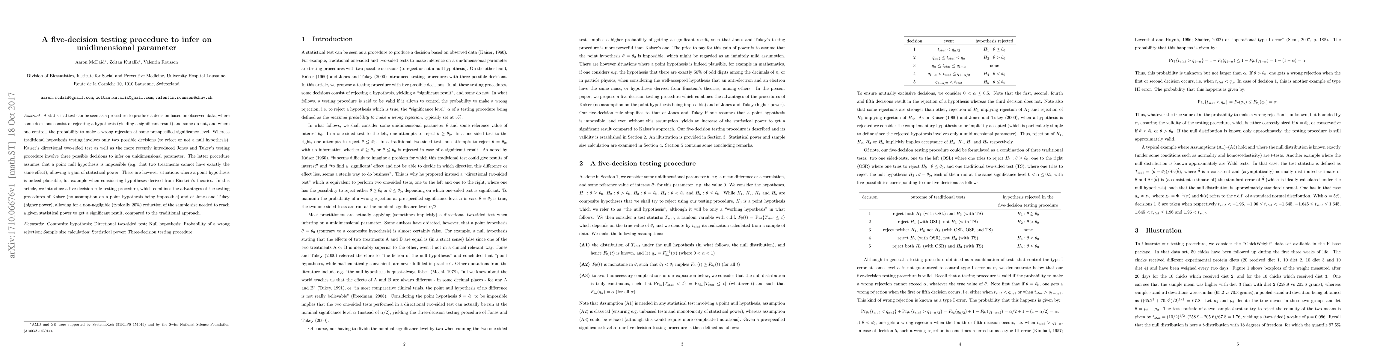 A new five-decision testing procedure is introduced to infer on unidimensional parameters, combining the advantages of existing methods while allowing for a reduced sample size needed to reach statistical power.