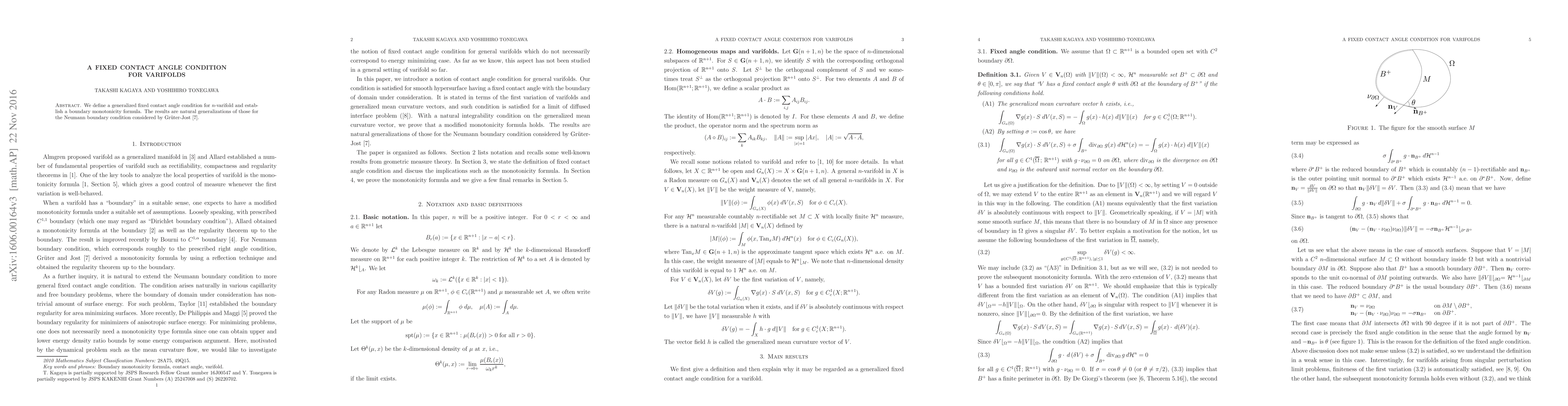 This paper introduces a broadened fixed contact angle condition for n-varifolds, extending Neumann boundary condition results by Grüter-Jost. It presents a boundary monotonicity formula, offering a significant advancement in understanding varifold properties.
