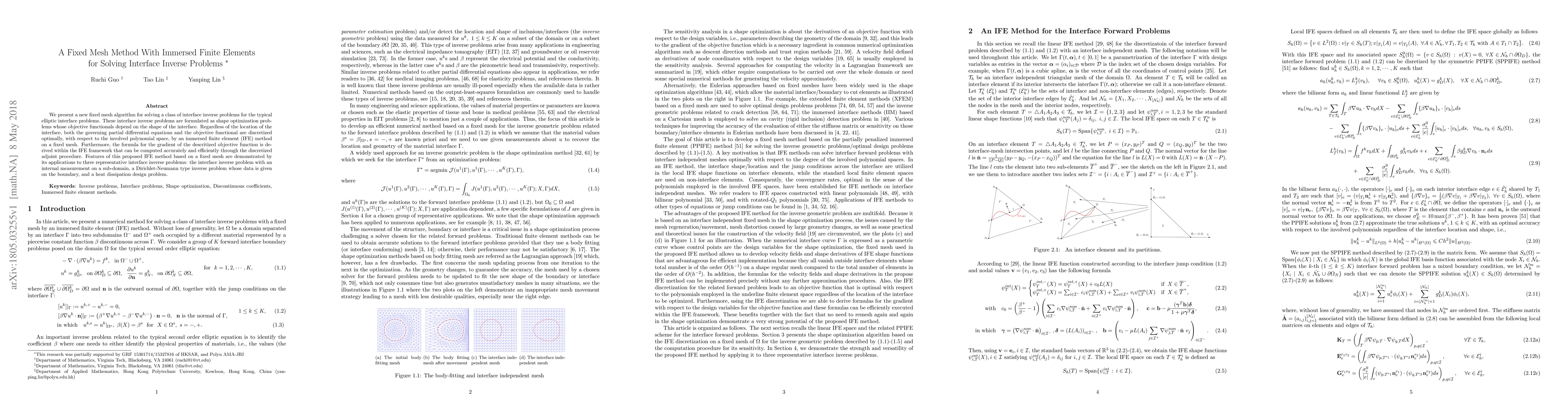 This paper introduces a fixed mesh algorithm using immersed finite elements for solving elliptic interface inverse problems, where the interface shape directly influences the objective functional. The method optimally discretizes both the PDEs and the objective function, and efficiently computes the gradient via a discretized adjoint procedure, demonstrated through applications to various inverse problems.