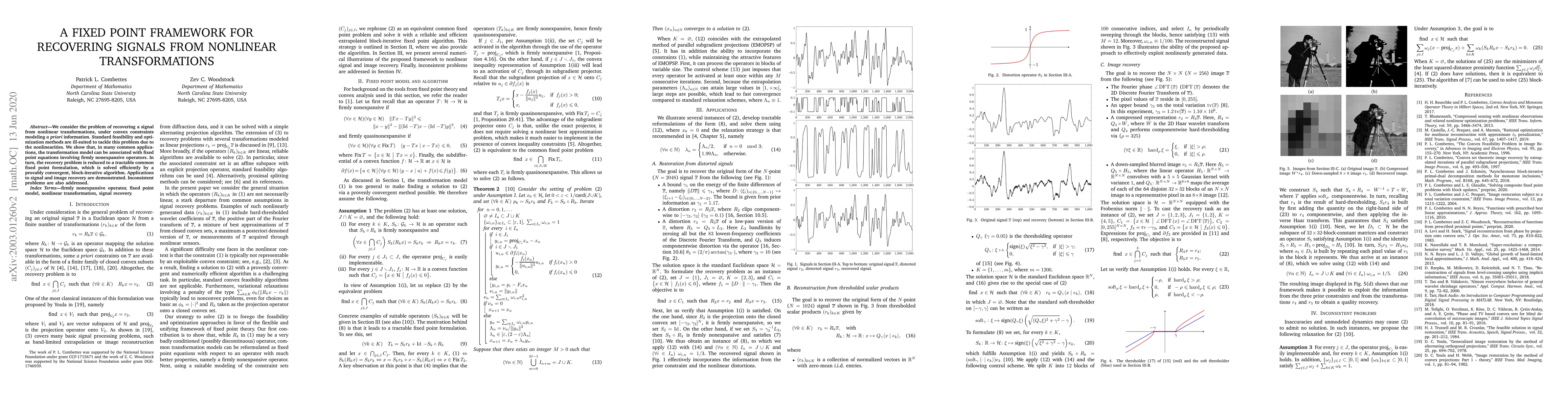 We consider the problem of recovering a signal from nonlinear transformations, under convex constraints modeling a priori information. Standard feasibility and optimization methods are ill-suited to tackle this problem due to the nonlinearities. We show that, in many common applications, the transformation model can be associated with fixed point equations involving firmly nonexpansive operators. In turn, the recovery problem is reduced to a tractable common fixed point formulation, which is solved efficiently by a provably convergent, block-iterative algorithm. Applications to signal and image recovery are demonstrated. Inconsistent problems are also addressed.