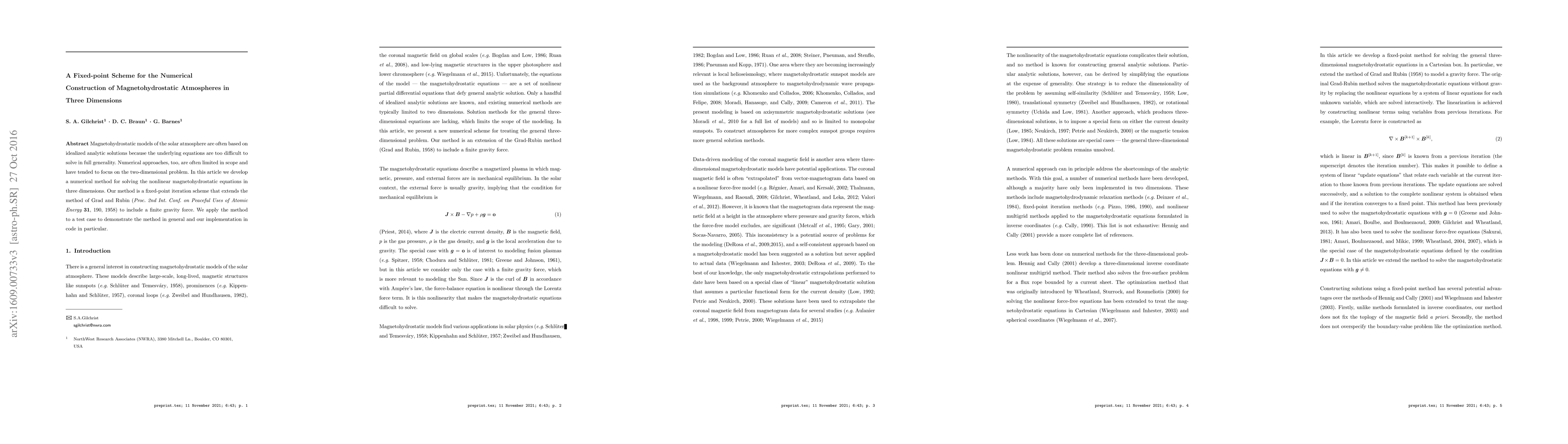 This paper introduces a fixed-point iteration scheme for numerically constructing three-dimensional magnetohydrostatic atmospheres, extending the method of Grad and Rubin to include gravity. The method is applied to a test case to demonstrate its effectiveness.