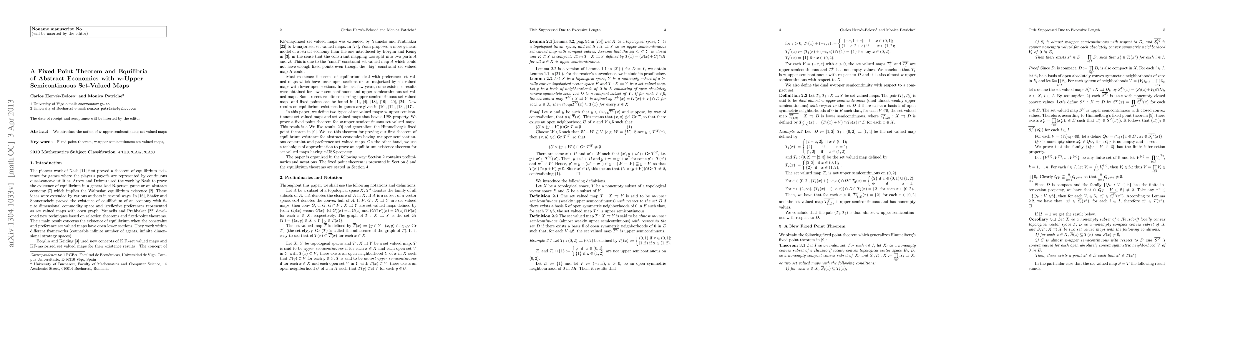 Summary: This paper presents a new fixed-point theorem for w-upper semicontinuous set-valued maps and introduces the e-USS-property for set-valued maps, leading to new equilibrium theorems for abstract economies.