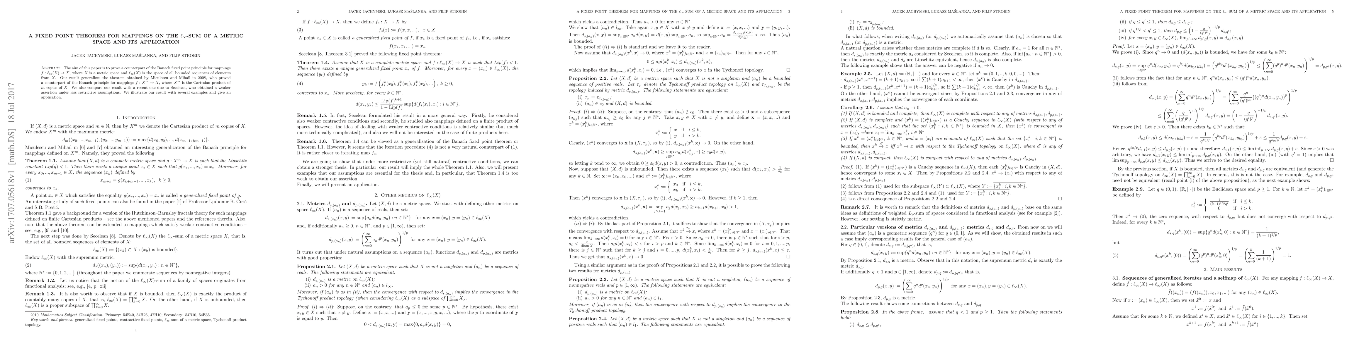 The aim of this paper is to prove a counterpart of the Banach fixed point principle for mappings $f: \ell_\infty(X) \to X$, where $X$ is a metric space and $\ell_\infty(X)$ is the space of all bounded sequences of elements from~$X$. Our result generalizes the theorem obtained by Miculescu and Mihail in 2008, who proved a~counterpart of the Banach principle for mappings $f:X^m\to X$, where $X^m$ is the Cartesian product of $m$ copies of $X$. We also compare our result with a recent one due to Secelean, who obtained a weaker assertion under less restrictive assumptions. We illustrate our result with several examples and give an application.