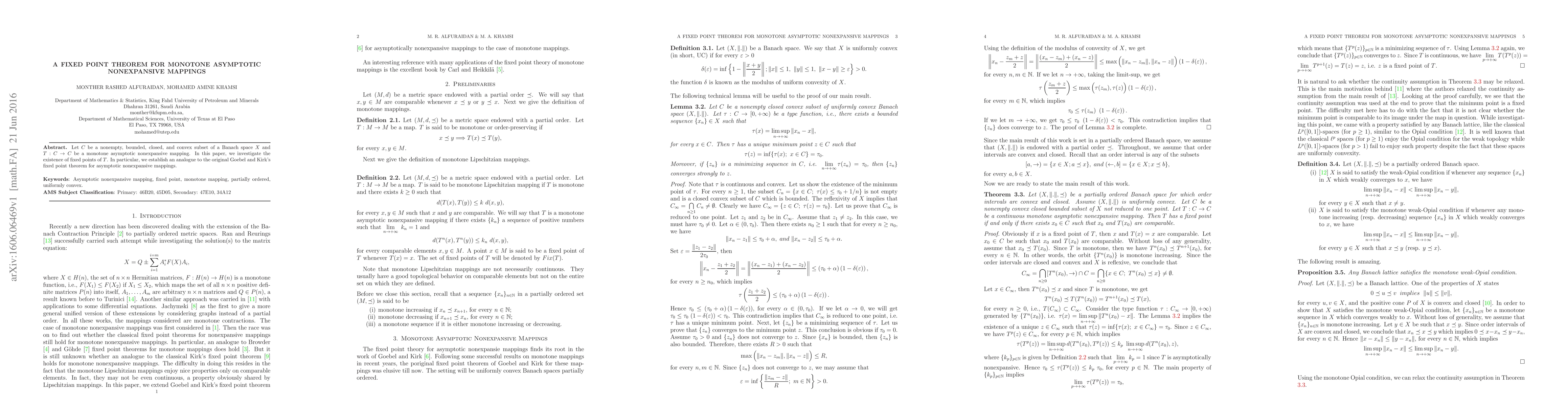 This paper establishes a fixed point theorem for monotone asymptotic nonexpansive mappings on a nonempty, bounded, closed, and convex subset of a Banach space, extending Goebel and Kirk's original fixed point theorem for such mappings.