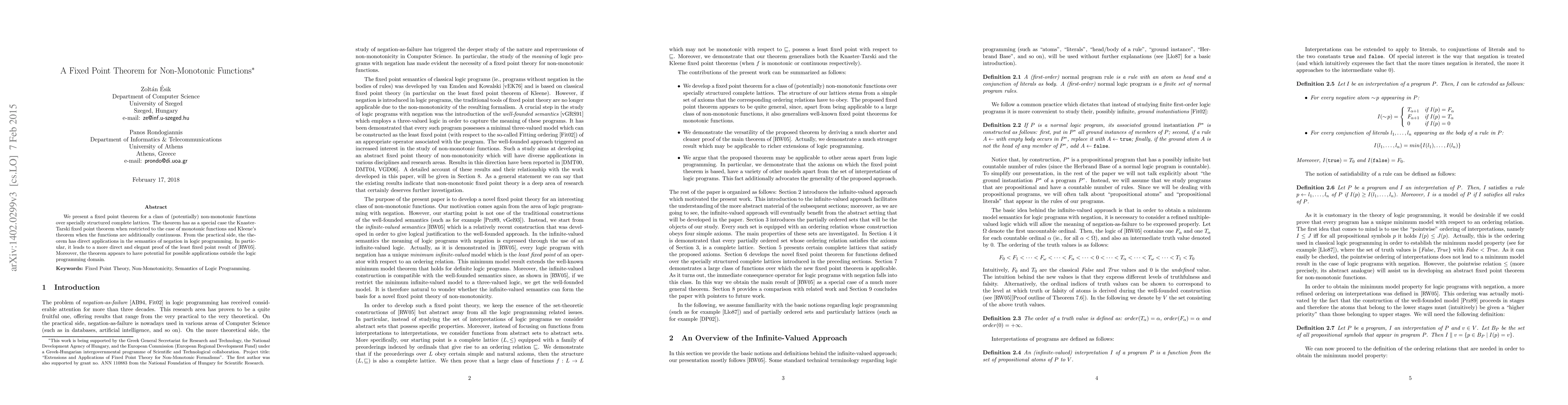 This paper introduces a fixed point theorem for non-monotonic functions over complete lattices, encompassing the Knaster-Tarski and Kleene theorems as special cases. It has practical implications for the semantics of negation in logic programming and offers a more elegant proof for the least fixed point result.