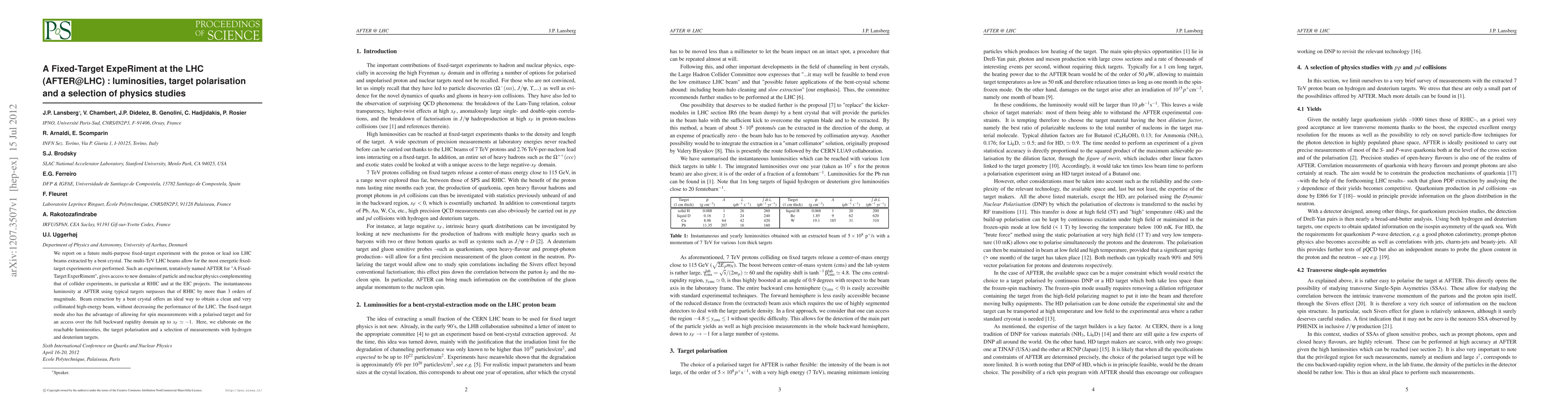 We report on a future multi-purpose fixed-target experiment with the proton or lead ion LHC beams extracted by a bent crystal. The multi-TeV LHC beams allow for the most energetic fixed-target experiments ever performed. Such an experiment, tentatively named AFTER for "A Fixed-Target ExperRiment", gives access to new domains of particle and nuclear physics complementing that of collider experiments, in particular at RHIC and at the EIC projects. The instantaneous luminosity at AFTER using typical targets surpasses that of RHIC by more than 3 orders of magnitude. Beam extraction by a bent crystal offers an ideal way to obtain a clean and very collimated high-energy beam, without decreasing the performance of the LHC. The fixed-target mode also has the advantage of allowing for spin measurements with a polarised target and for an access over the full backward rapidity domain up to xF ~ - 1. Here, we elaborate on the reachable luminosities, the target polarisation and a selection of measurements with hydrogen and deuterium targets.