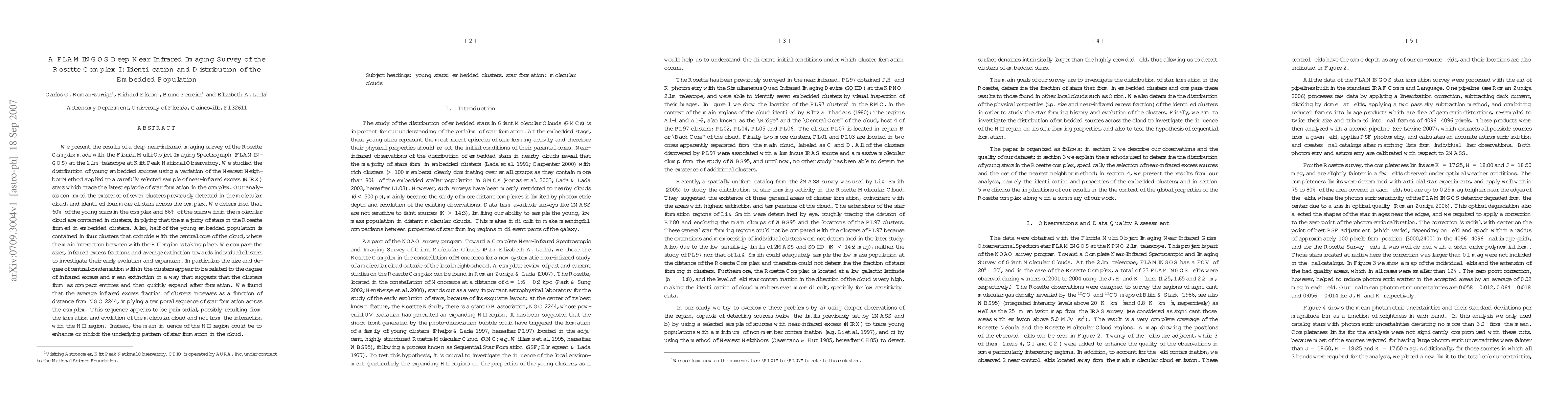 We present the results of a deep near-infrared imaging survey of the Rosette Complex. We studied the distribution of young embedded sources using a variation of the Nearest Neighbor Method applied to a carefully selected sample of near-infrared excess (NIRX) stars which trace the latest episode of star formation in the complex. Our analysis confirmed the existence of seven clusters previously detected in the molecular cloud, and identified four more clusters across the complex. We determined that 60% of the young stars in the complex and 86% of the stars within the molecular cloud are contained in clusters, implying that the majority of stars in the Rosette formed in embedded clusters. We compare the sizes, infrared excess fractions and average extinction towards individual clusters to investigate their early evolution and expansion. We found that the average infrared excess fraction of clusters increases as a function of distance from NGC 2244, implying a temporal sequence of star formation across the complex. This sequence appears to be primordial, possibly resulting from the formation and evolution of the molecular cloud and not from the interaction with the HII region.