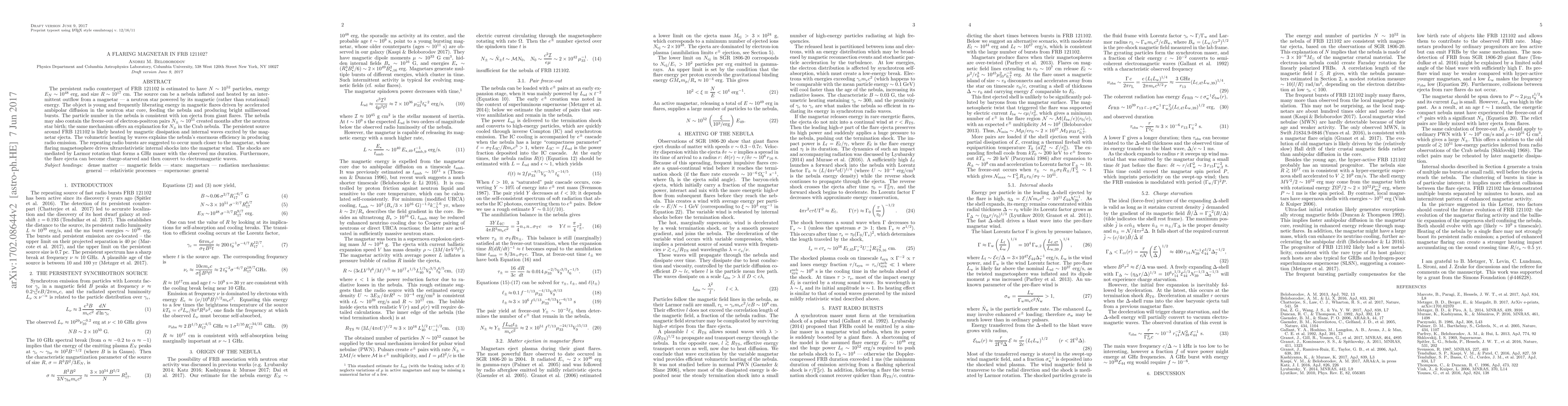 This paper proposes that the persistent radio counterpart of FRB 121102 is powered by a magnetar, a neutron star with intense magnetic activity. The magnetar's flares generate a nebula that emits radio waves, with the bursts likely resulting from ultrarelativistic internal shocks in the magnetar wind.