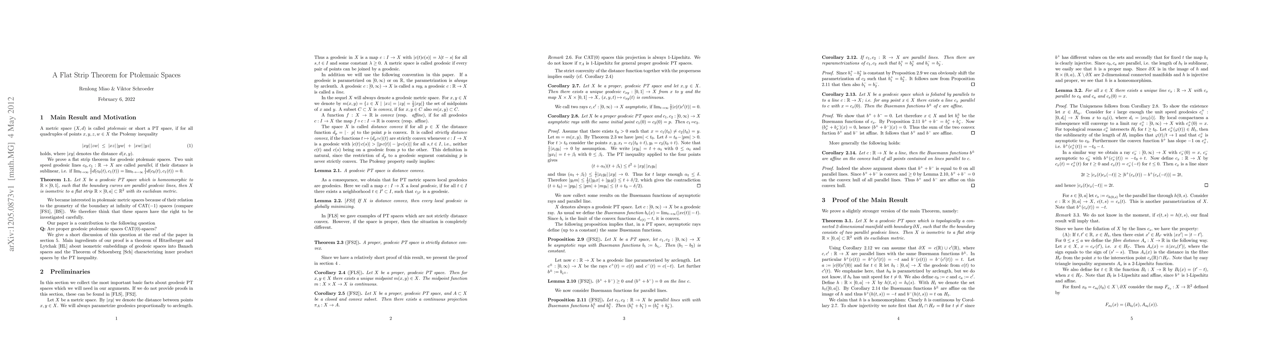 We prove a flat strip theorem for 2-dimensional ptolemaic spaces.