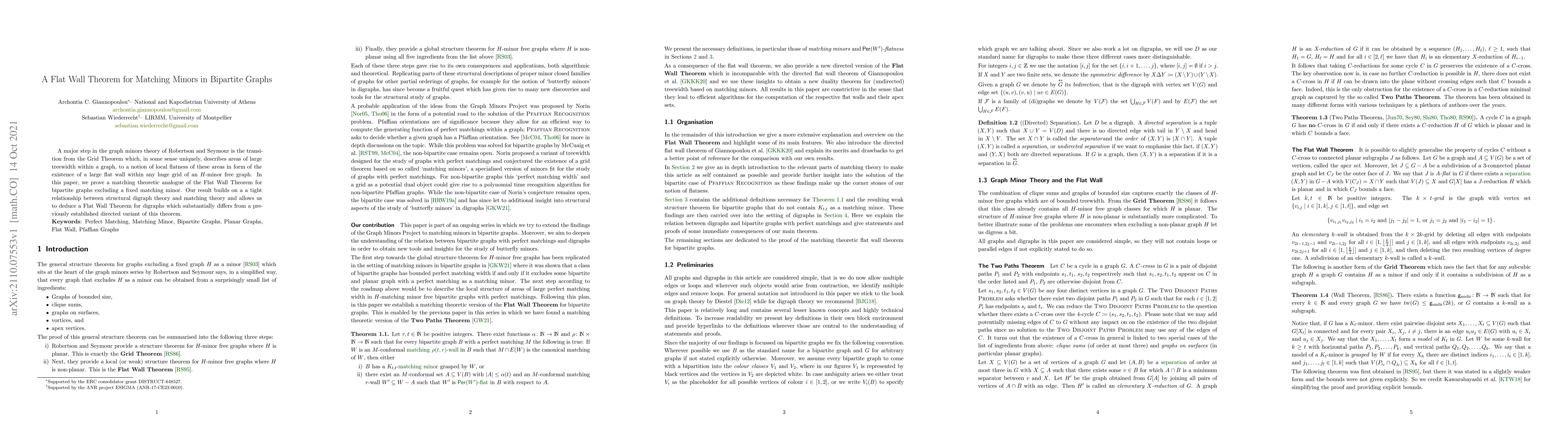 This paper proves a matching-theoretic analogue of the Flat Wall Theorem for bipartite graphs excluding a fixed matching minor, leveraging a tight relationship between structural digraph theory and matching theory to deduce a novel Flat Wall Theorem for digraphs differing from previous directed variants.