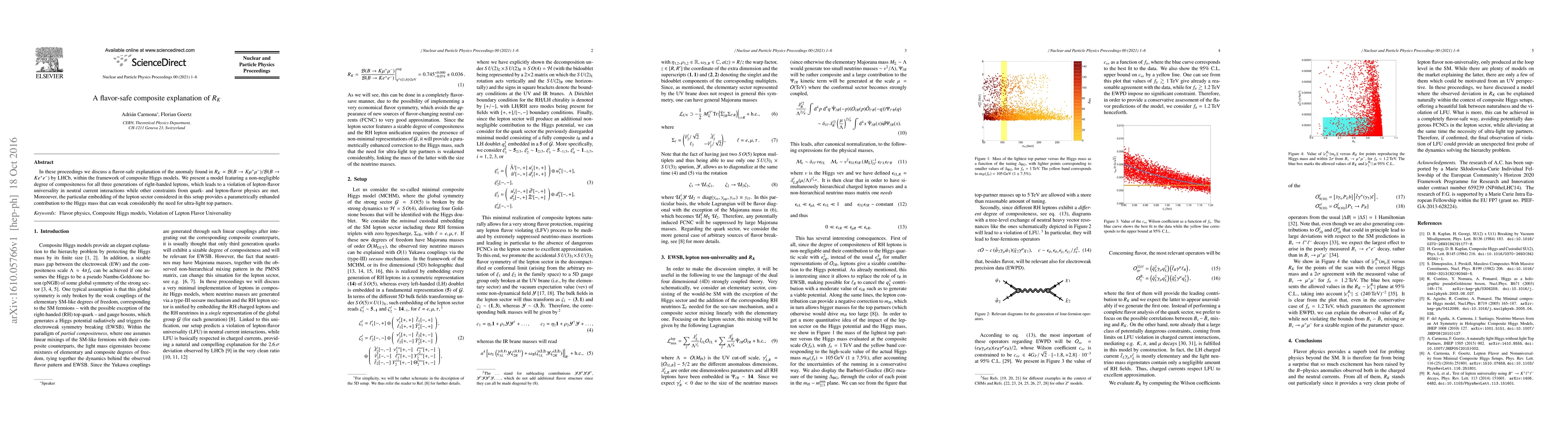In these proceedings we discuss a flavor-safe explanation of the anomaly found in $R_K= {\cal B}(B \to K \mu^+ \mu^-)/{\cal B}(B \to K e^+ e^-)$ by LHCb, within the framework of composite Higgs models. We present a model featuring a non-negligible degree of compositeness for all three generations of right-handed leptons, which leads to a violation of lepton-flavor universality in neutral current interactions while other constraints from quark- and lepton-flavor physics are met. Moreoever, the particular embedding of the lepton sector considered in this setup provides a parametrically enhanded contribution to the Higgs mass that can weak considerably the need for ultra-light top partners.