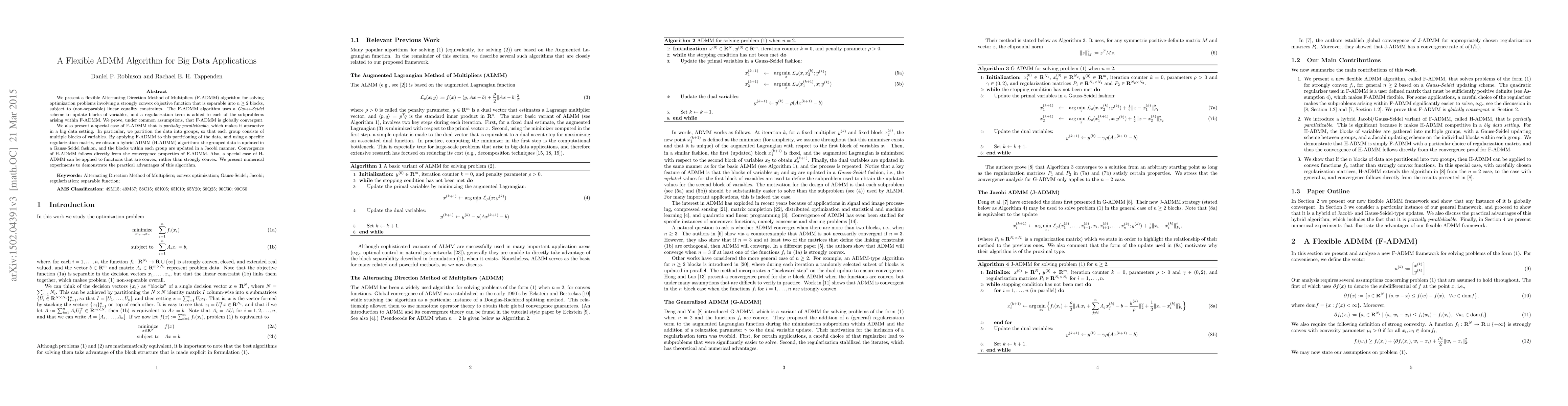 This paper introduces a flexible ADMM algorithm (F-ADMM) for solving large-scale optimization problems with strongly convex objectives and linear constraints, proving its global convergence. It also presents a hybrid version (H-ADMM) that is partially parallelizable and suitable for big data applications, demonstrating practical advantages through numerical experiments.