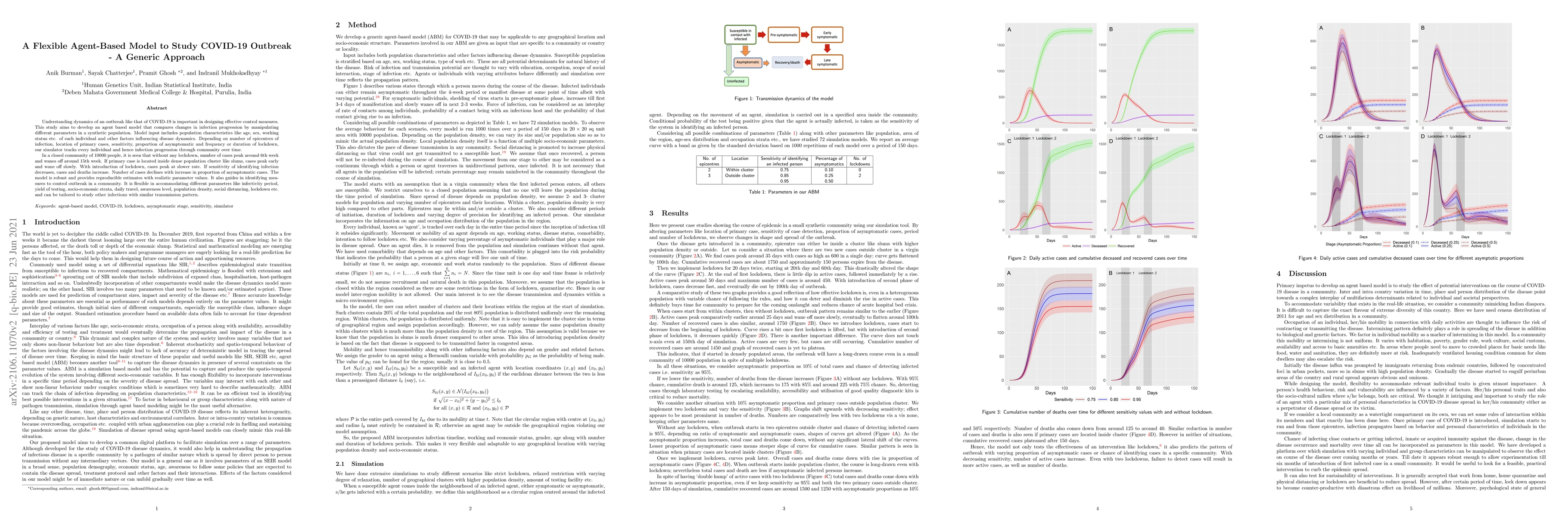 Understanding dynamics of an outbreak like that of COVID-19 is important in designing effective control measures. This study aims to develop an agent based model that compares changes in infection progression by manipulating different parameters in a synthetic population. Model input includes population characteristics like age, sex, working status etc. of each individual and other factors influencing disease dynamics. Depending on number of epicentres of infection, location of primary cases, sensitivity, proportion of asymptomatic and frequency or duration of lockdown, our simulator tracks every individual and hence infection progression through community over time. In a closed community of 10000 people, it is seen that without any lockdown, number of cases peak around 6th week and wanes off around 15th week. If primary case is located inside dense population cluster like slums, cases peak early and wane off slowly. With introduction of lockdown, cases peak at slower rate. If sensitivity of identifying infection decreases, cases and deaths increase. Number of cases declines with increase in proportion of asymptomatic cases. The model is robust and provides reproducible estimates with realistic parameter values. It also guides in identifying measures to control outbreak in a community. It is flexible in accommodating different parameters like infectivity period, yield of testing, socio-economic strata, daily travel, awareness level, population density, social distancing, lockdown etc. and can be tailored to study other infections with similar transmission pattern.