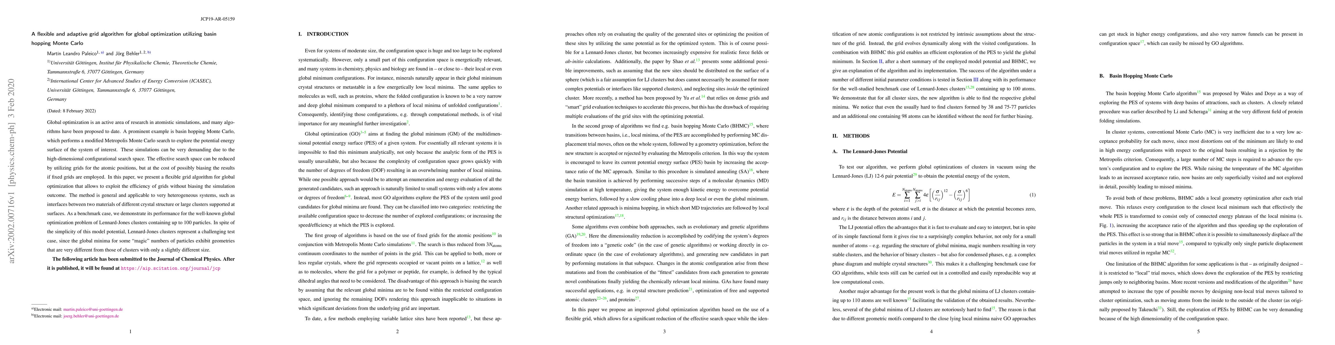 This paper introduces a flexible grid algorithm that combines basin hopping Monte Carlo for global optimization, minimizing bias while efficiently exploring high-dimensional configurational spaces. Demonstrated on Lennard-Jones clusters, the method shows promising performance for complex, heterogeneous systems.