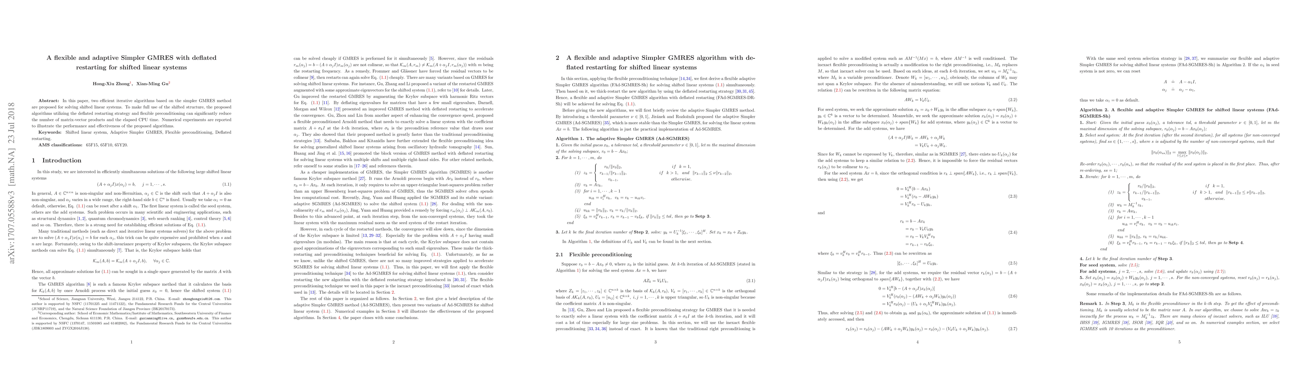 Researchers propose two efficient algorithms for solving shifted linear systems, leveraging deflated restarting and flexible preconditioning to reduce matrix-vector products and CPU time.