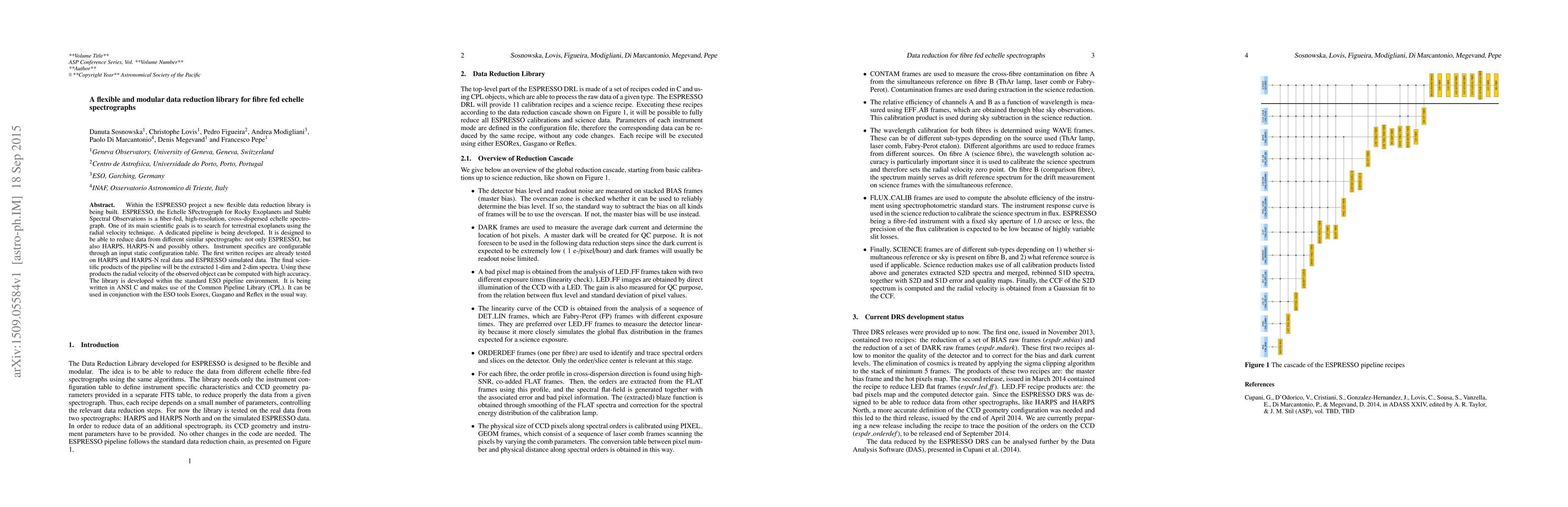 This paper describes a new flexible data reduction library for fiber-fed echelle spectrographs, specifically developed for the ESPRESSO project, which aims to search for terrestrial exoplanets. The library is modular, configurable, and tested on data from HARPS and HARPS-N, producing accurate radial velocity measurements.