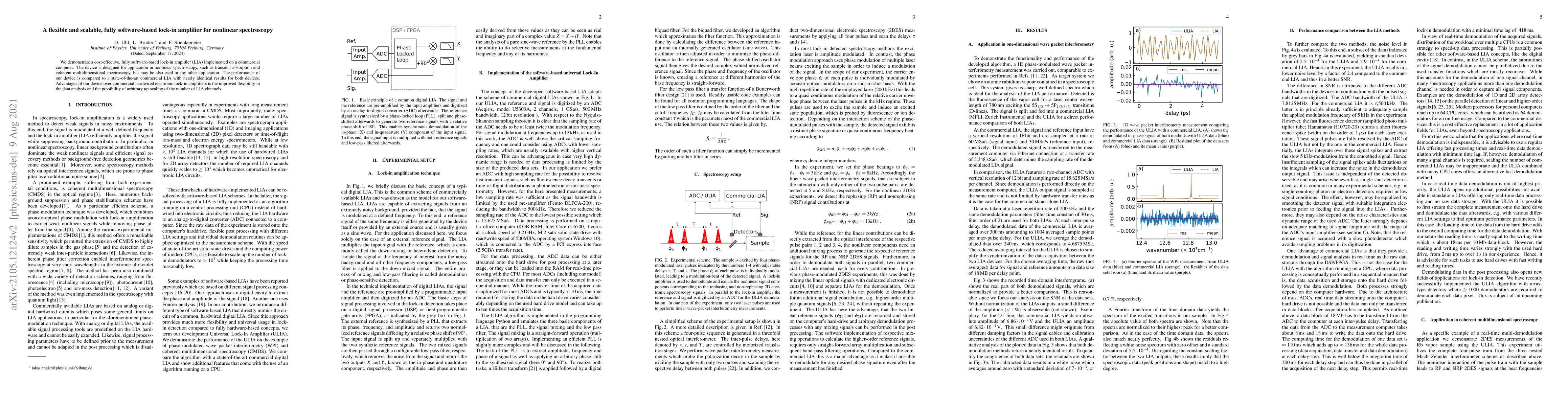 We demonstrate a cost-effective, fully software-based lock-in amplifier (LIA) implemented on a commercial computer. The device is designed for application in nonlinear spectroscopy, such as transient absorption and coherent multidi-mensional spectroscopy, but may be also used in any other application. The performance of our device is compared to a state-of-the-art commercial LIA with nearly identical results for both devices. Advantages of our device over commercial hardwired electronic lock-in amplifiers is the improved flexibility in the data analysis and the possibility of arbitrary up-scaling of the number of LIA channels.