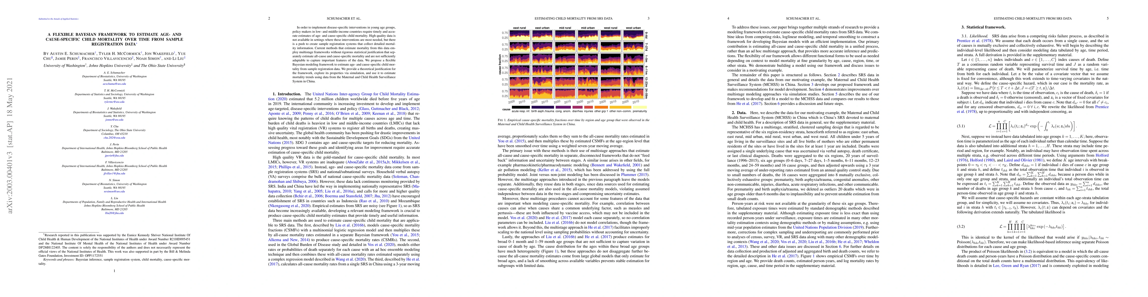 This paper proposes a flexible Bayesian framework to estimate age- and cause-specific child mortality from sample registration data, addressing the lack of high-quality data in low- and middle-income countries. The framework is theoretically justified, tested via simulation, and applied to estimate mortality trends in China.