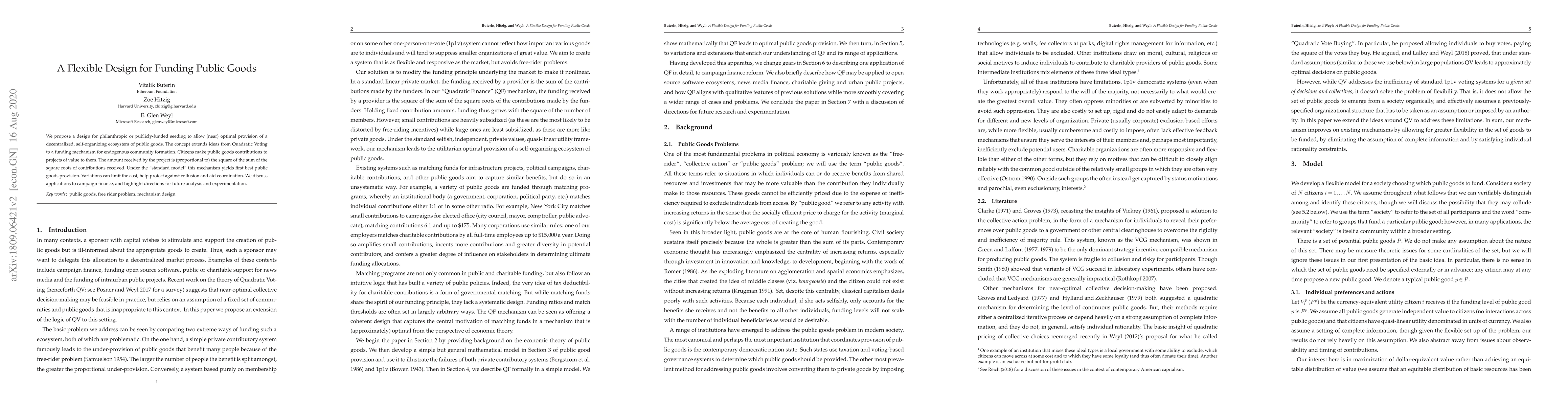 A new funding mechanism for public goods is proposed, allowing optimal provision of decentralized public goods through community formation and contribution-based funding. This design resolves the liberal-communitarian debate with neutral and non-authoritarian rules.