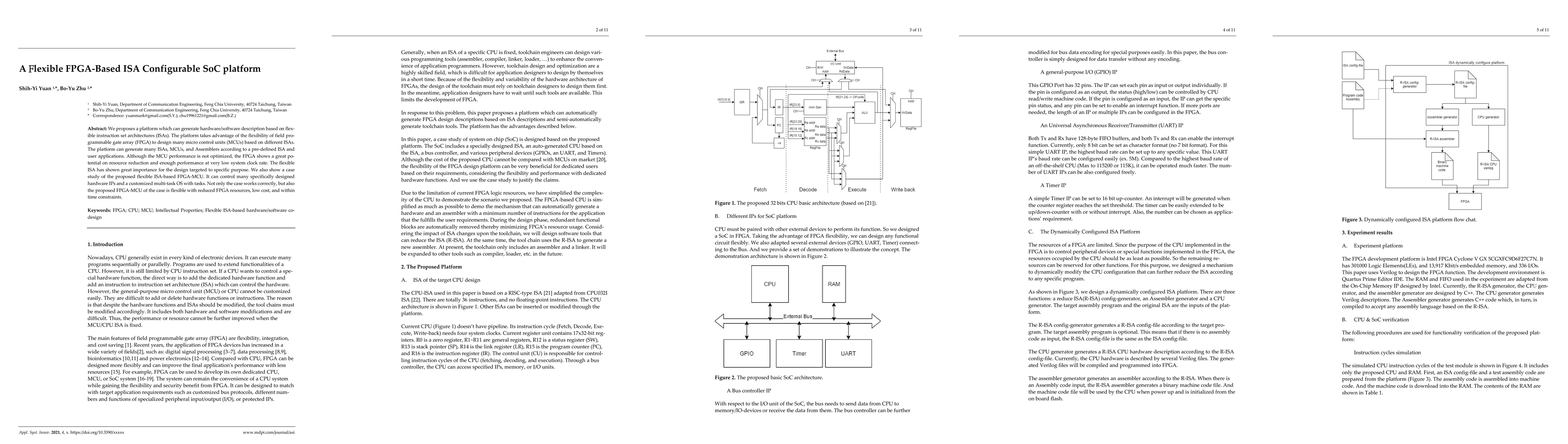 The paper proposes an FPGA-based platform that can generate flexible ISAs and micro control units (MCUs), showcasing its potential for resource reduction and performance at low clock rates. A case study demonstrates the platform's effectiveness in controlling specific hardware IPs and a customized OS, highlighting its flexibility, low cost, and timely performance.