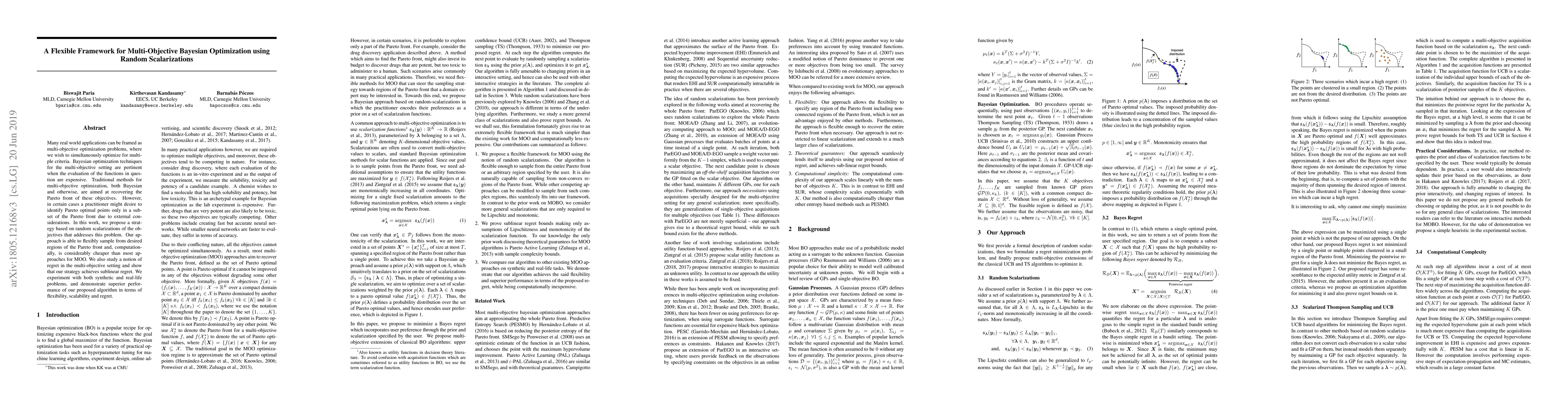 This paper proposes a flexible Bayesian optimization framework for multi-objective optimization using random scalarizations, enabling targeted exploration of desired regions of the Pareto front with lower computational cost and achieving sublinear regret. Experiments show superior performance in terms of flexibility and regret compared to existing methods.