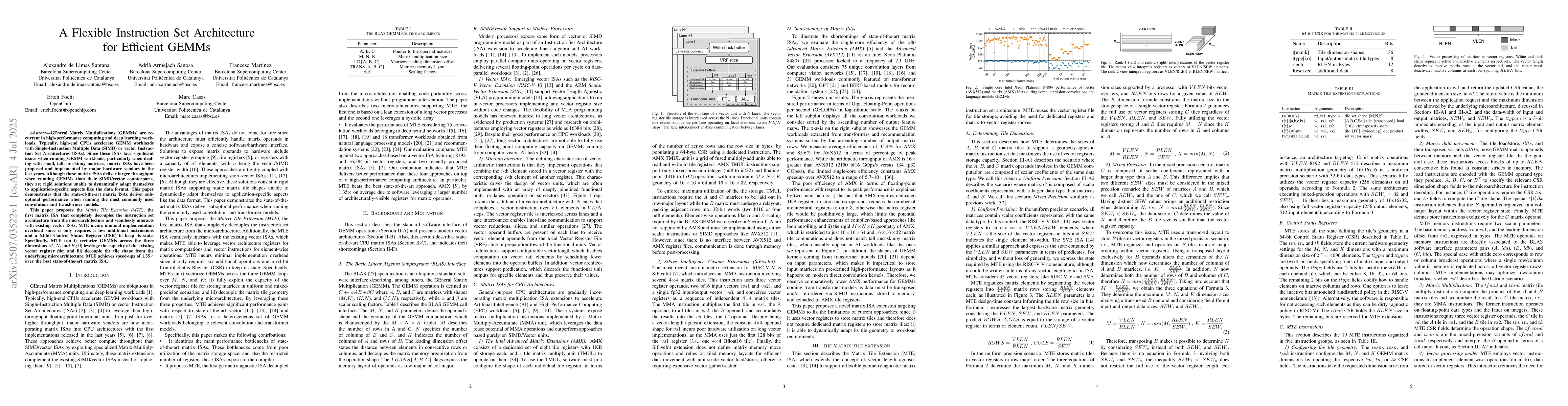 GEneral Matrix Multiplications (GEMMs) are recurrent in high-performance computing and deep learning workloads. Typically, high-end CPUs accelerate GEMM workloads with Single-Instruction Multiple Data (SIMD) or vector Instruction Set Architectures (ISAs). Since these ISAs face significant issues when running GEMM workloads, particularly when dealing with small, tall, or skinny matrices, matrix ISAs have been proposed and implemented by major hardware vendors in the last years. Although these matrix ISAs deliver larger throughput when running GEMMs than their SIMD/vector counterparts, they are rigid solutions unable to dynamically adapt themselves to application-specific aspects like the data format. This paper demonstrates that the state-of-the-art matrix ISAs deliver suboptimal performance when running the most commonly used convolution and transformer models. This paper proposes the Matrix Tile Extension (MTE), the first matrix ISA that completely decouples the instruction set architecture from the microarchitecture and seamlessly interacts with existing vector ISAs. MTE incurs minimal implementation overhead since it only requires a few additional instructions and a 64-bit Control Status Register (CSR) to keep its state. Specifically, MTE can i) vectorize GEMMs across the three dimensions M, N, and K; ii) leverage the capacity of the existing vector register file; and iii) decouple the tile shape from the underlying microarchitecture. MTE achieves speed-ups of 1.35x over the best state-of-the-art matrix ISA.