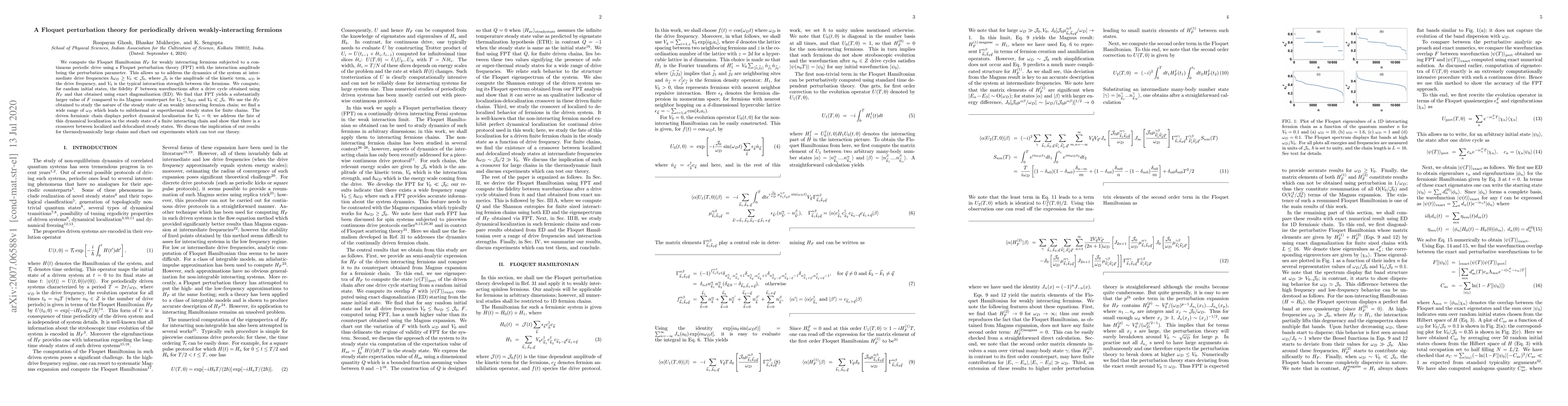 This paper develops a Floquet perturbation theory (FPT) to study the dynamics of weakly interacting fermions under periodic drives, finding that FPT outperforms the Magnus expansion for intermediate drive frequencies. It reveals a range of drive frequencies leading to subthermal or superthermal steady states in driven fermion chains, and discusses the transition from dynamical localization to delocalization in finite interacting chains.