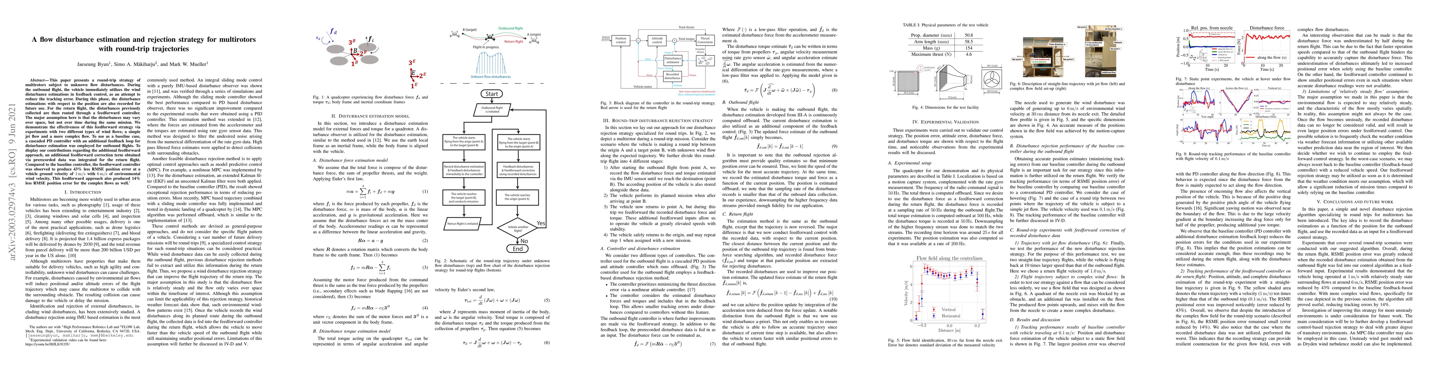 This paper presents a round-trip strategy of multirotors subject to unknown flow disturbances. During the outbound flight, the vehicle immediately utilizes the wind disturbance estimations in feedback control, as an attempt to reduce the tracking error. During this phase, the disturbance estimations with respect to the position are also recorded for future use. For the return flight, the disturbances previously collected are then routed through a feedforward controller. The major assumption here is that the disturbances may vary over space, but not over time during the same mission. We demonstrate the effectiveness of this feedforward strategy via experiments with two different types of wind flows; a simple jet flow and a more complex flow. To use as a baseline case, a cascaded PD controller with an additional feedback loop for disturbance estimation was employed for outbound flights. To display our contributions regarding the additional feedforward approach, an additional feedforward correction term obtained via prerecorded data was integrated for the return flight. Compared to the baseline controller, the feedforward controller was observed to produce 43% less RMSE position error at a vehicle ground velocity of 1 m/s with 6 m/s of environmental wind velocity. This feedforward approach also produced 14% less RMSE position error for the complex flows as well.