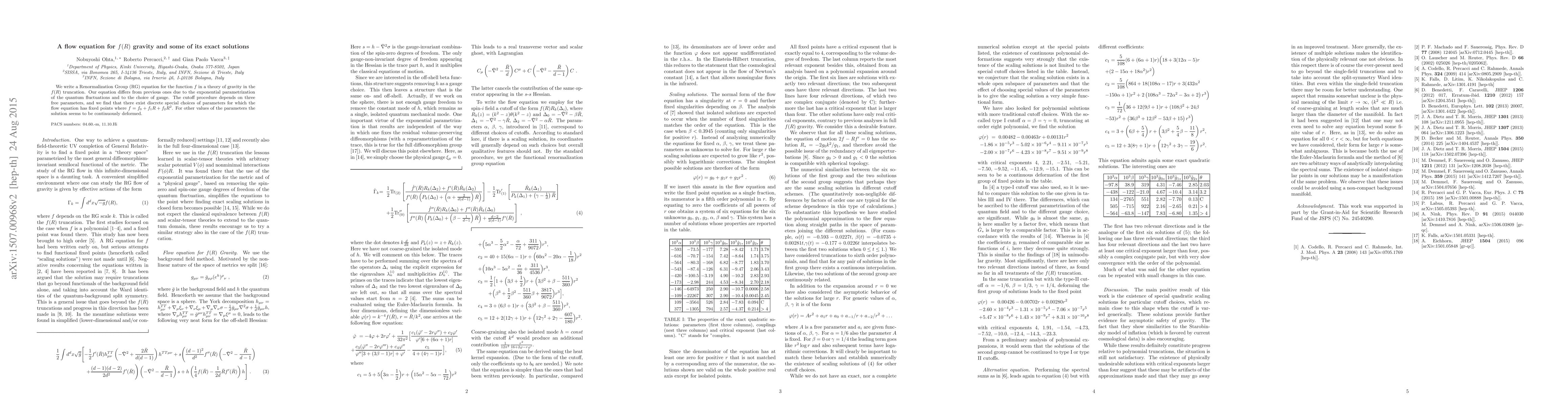 We write a Renormalization Group (RG) equation for the function f in a theory of gravity in the f(R) truncation. Our equation differs from previous ones due to the exponential parametrization of the quantum fluctuations and to the choice of gauge. The cutoff procedure depends on three free parameters, and we find that there exist discrete special choices of parameters for which the flow equation has fixed points where f=f_0+f_1 R+f_2 R^2. For other values of the parameters the solution seems to be continuously deformed.