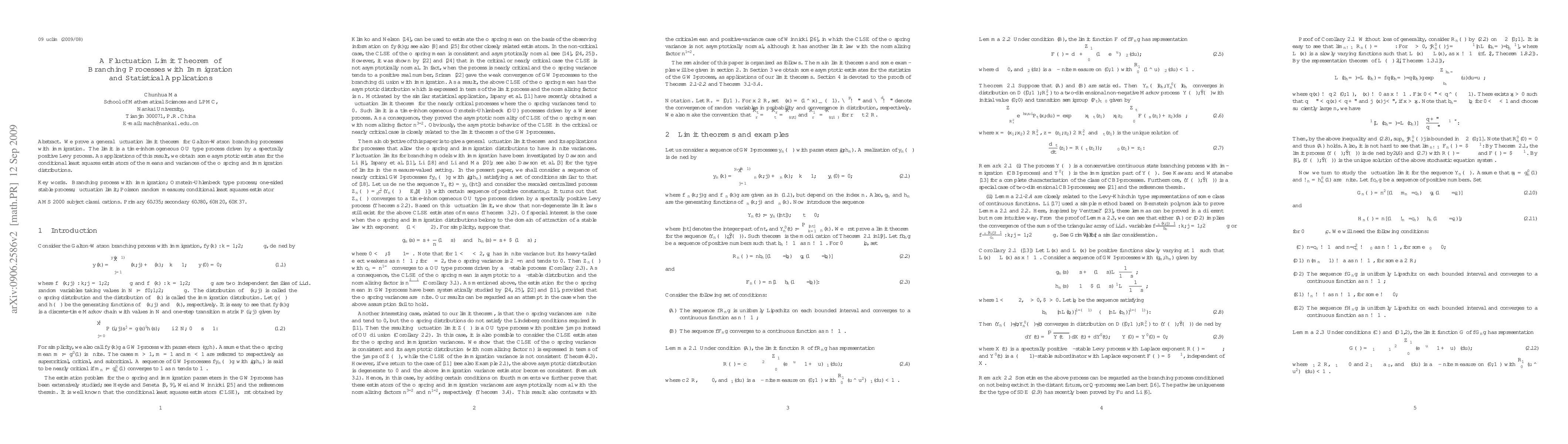 Summary: A fluctuation limit theorem for Galton-Watson branching processes with immigration is established, leading to a time-inhomogeneous OU process driven by a spectrally positive Lévy process. Applications include asymptotic estimates for the conditional least-squares estimator of offspring and immigration parameters.