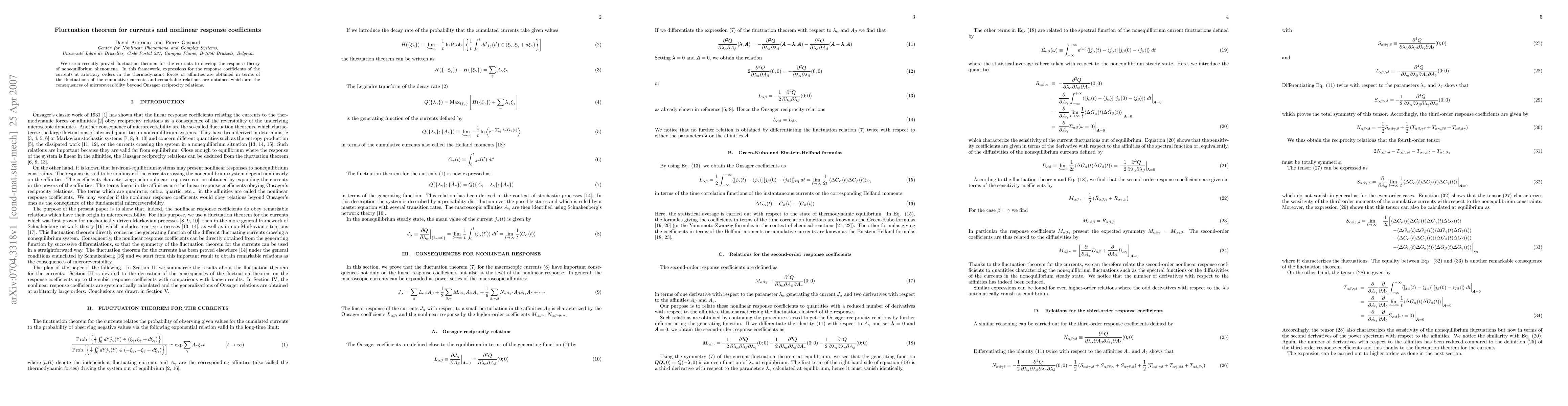 This paper develops a fluctuation theorem for currents to advance the response theory of nonequilibrium phenomena, deriving expressions for non-linear response coefficients in terms of current fluctuations and revealing microreversibility relations that extend beyond Onsager's reciprocity.