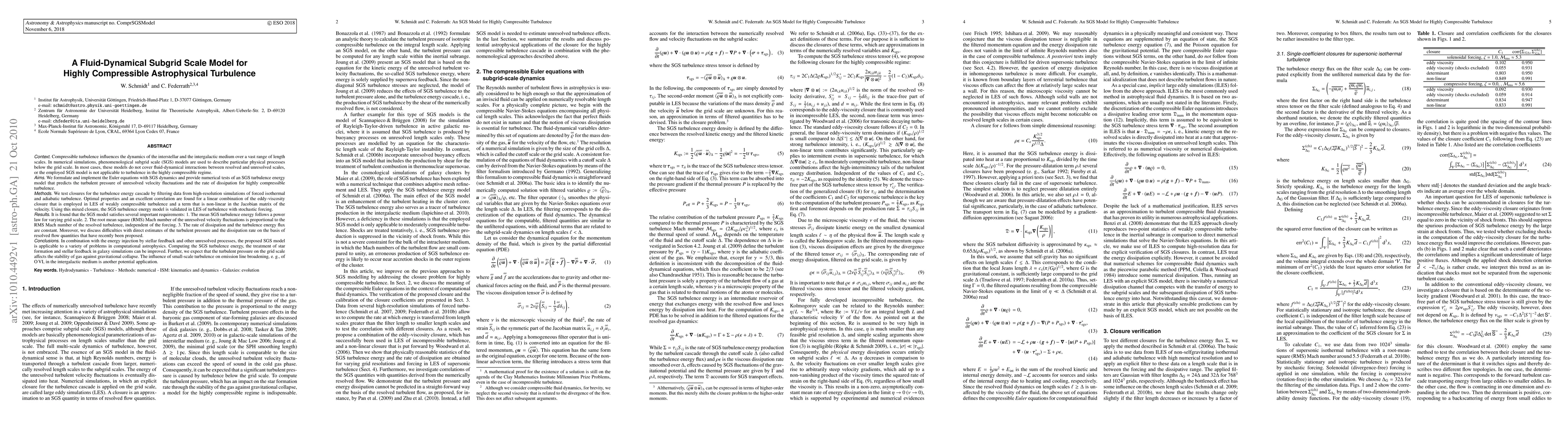 This paper develops a subgrid scale (SGS) turbulence energy model for highly compressible astrophysical turbulence, validated through high-resolution simulations. The proposed mixed closure model effectively predicts turbulent pressure and dissipation rate, showing good correlation and satisfying key requirements for turbulence modeling in astrophysical simulations.