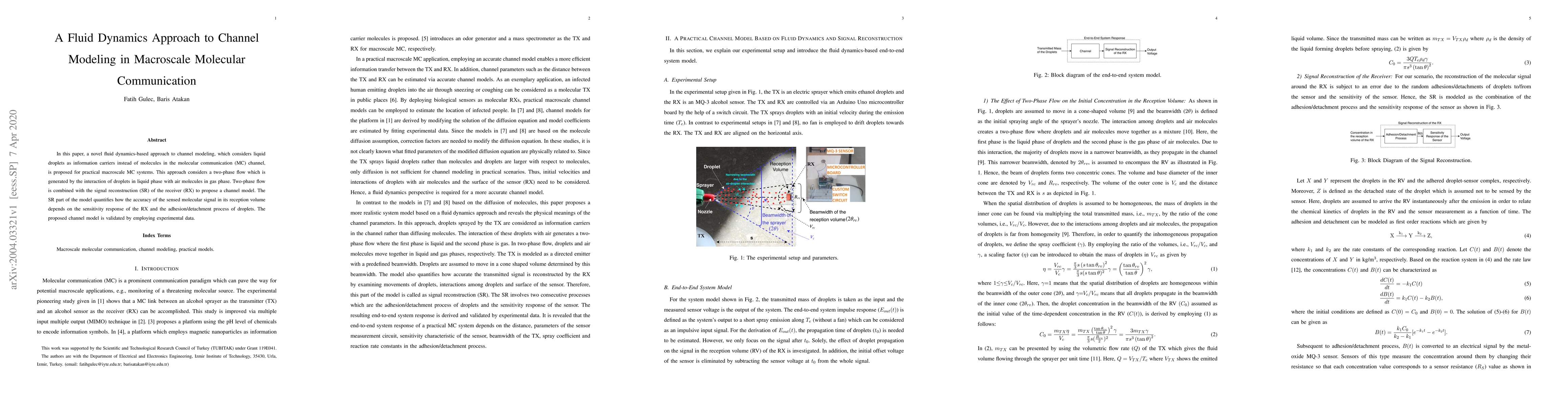 This paper proposes a novel fluid dynamics-based channel model for macroscale molecular communication using liquid droplets as information carriers, considering a two-phase flow interaction. The model integrates signal reconstruction to quantify the accuracy of molecular signal reception, validated by experimental data.