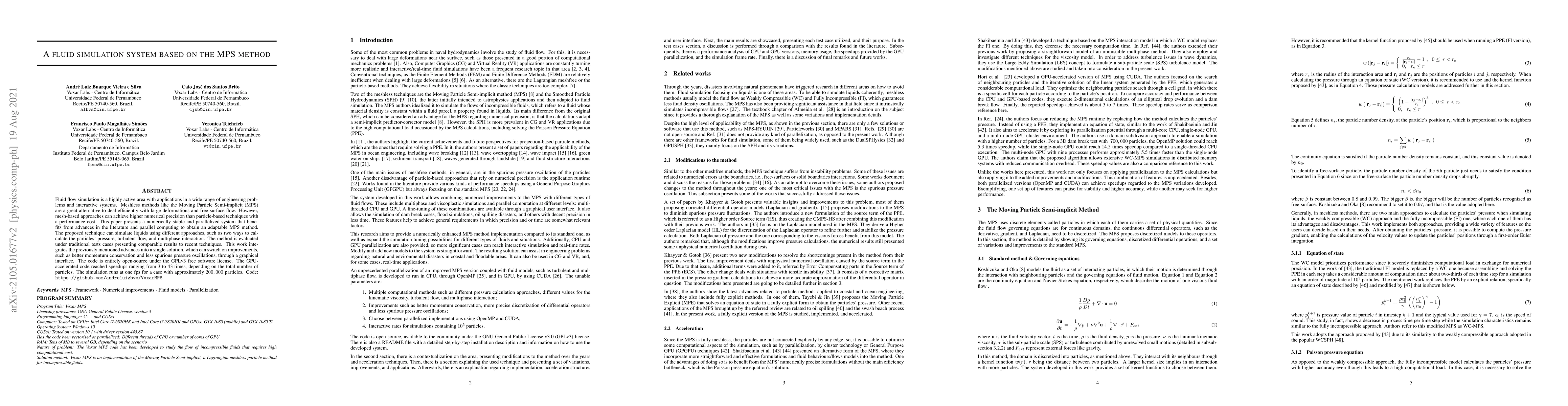 A novel fluid simulation system based on the Moving Particle Semi-implicit (MPS) method is presented, offering improved numerical stability and parallelization for simulating liquids with various approaches, including turbulent flow and multiphase interaction.