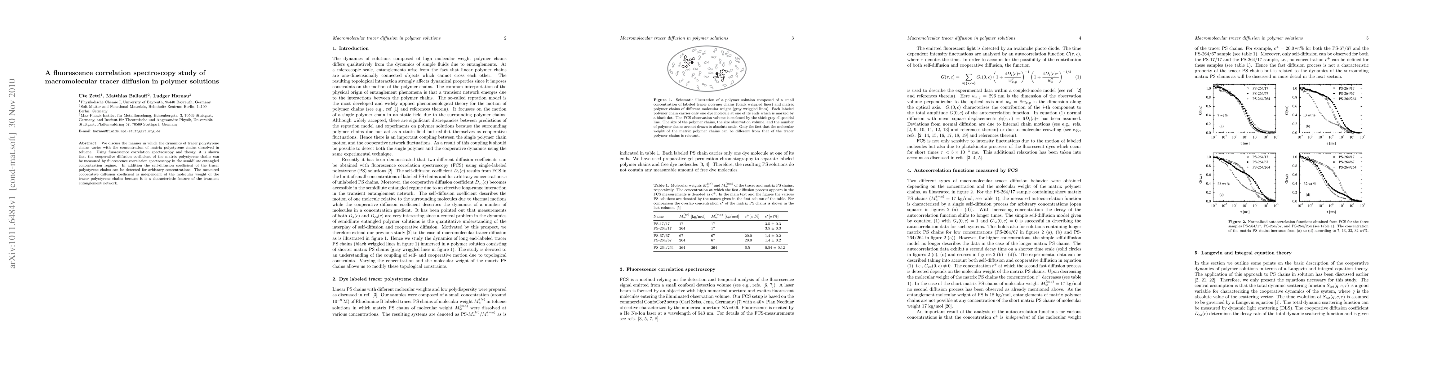 This study employs fluorescence correlation spectroscopy to investigate the diffusion dynamics of tracer polystyrene chains in polymer solutions, revealing that the cooperative diffusion coefficient of matrix chains is independent of tracer molecular weight and characteristic of the transient entanglement network, while the self-diffusion of tracers varies with concentration.