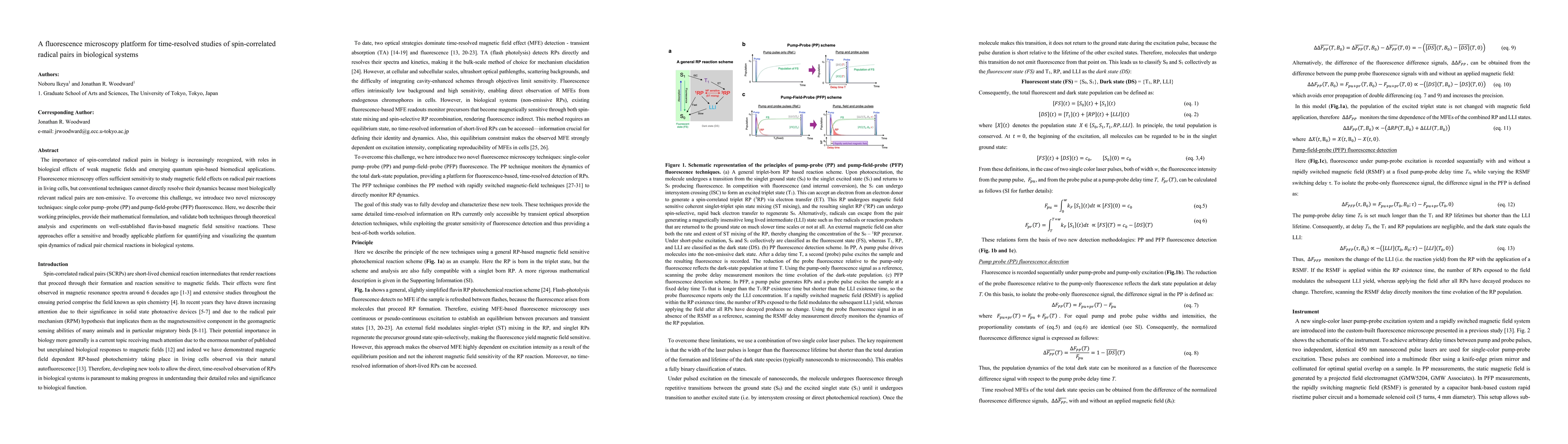 The importance of spin-correlated radical pairs in biology is increasingly recognized, with roles in biological effects of weak magnetic fields and emerging quantum spin-based biomedical applications. Fluorescence microscopy offers sufficient sensitivity to study magnetic field effects on radical pair reactions in living cells, but conventional techniques cannot directly resolve their dynamics because most biologically relevant radical pairs are non-emissive. To overcome this challenge, we introduce two novel microscopy techniques: single color pump-probe (PP) and pump-field-probe (PFP) fluorescence. Here, we describe their working principles, provide their mathematical formulation, and validate both techniques through theoretical analysis and experiments on well-established flavin-based magnetic field sensitive reactions. These approaches offer a sensitive and broadly applicable platform for quantifying and visualizing the quantum spin dynamics of radical pair chemical reactions in biological systems.