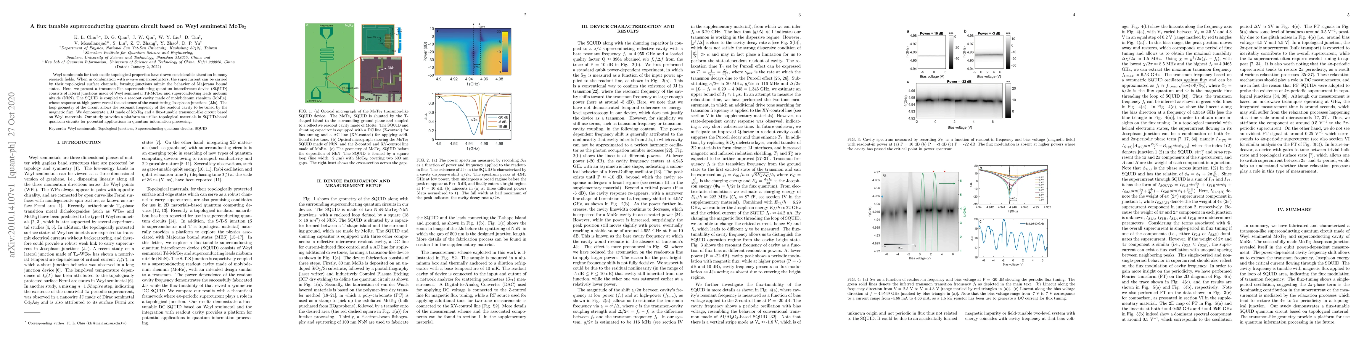 This paper presents a flux-tunable superconducting quantum interference device (SQUID) utilizing Weyl semimetal MoTe2 and niobium nitride (NbN) junctions, demonstrating the potential for topological materials in quantum information processing. The SQUID's resonant frequency is tunable via magnetic flux, showcasing the integration of Weyl semimetals in superconducting circuits.