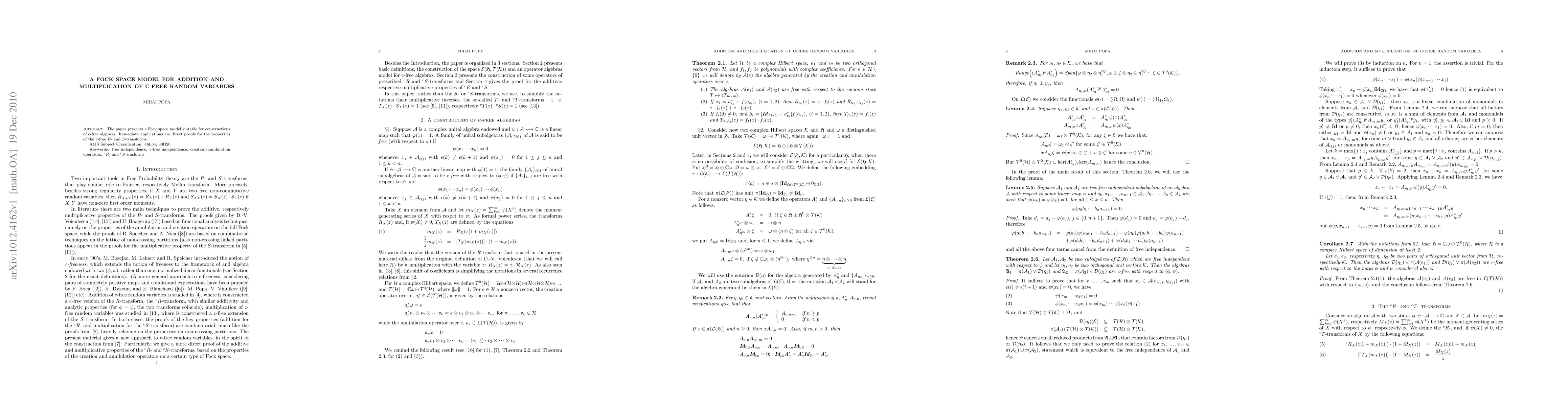 The paper presents a Fock space model suitable for constructions of c-free algebras. Immediate applications are direct proofs for the properties of the c-free R- and S-transforms.