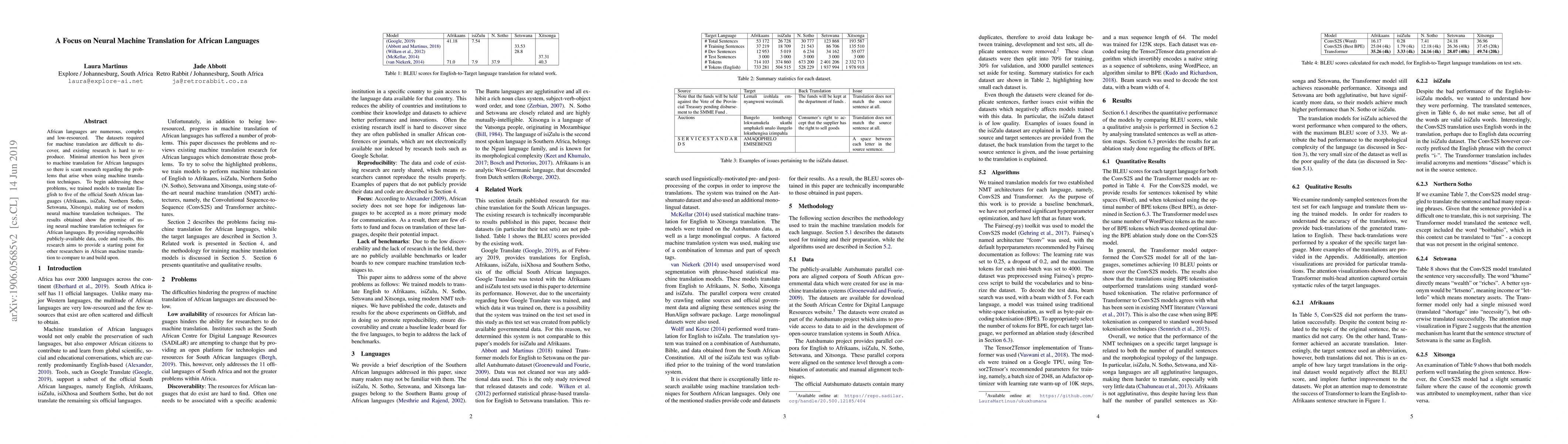 This paper explores neural machine translation for five official South African languages, demonstrating its potential and providing publicly available data and code to foster further research in low-resource African languages. The study aims to address the challenges of scarce datasets and reproducibility in existing research.