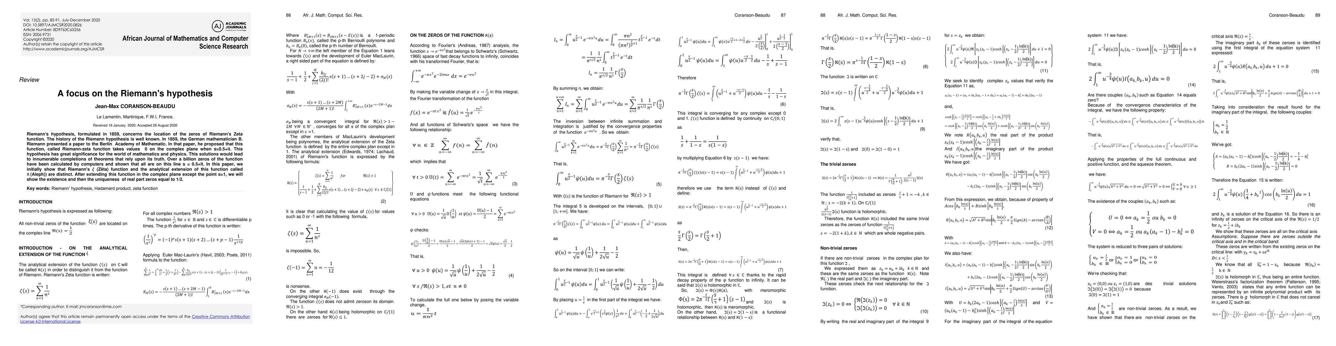 This paper explores Riemann's Hypothesis and demonstrates the distinctness of the Riemann Zeta function and its analytical extension, Aleph. It confirms the uniqueness of the zeros of the Zeta function located on the critical line s = 0.5 + it.