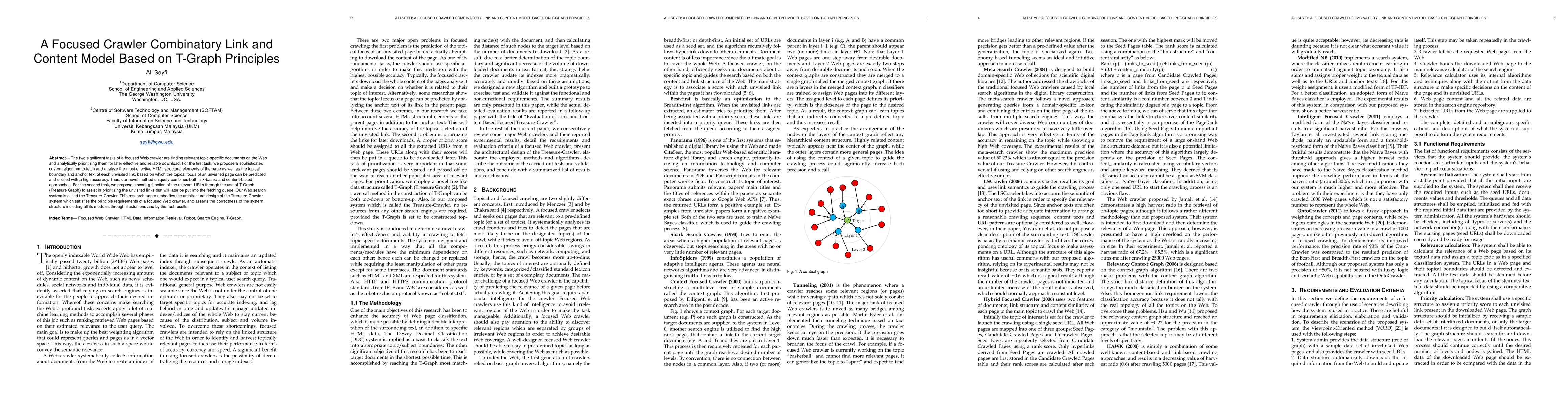 This research paper introduces the Treasure-Crawler system, which combines link and content analysis to efficiently fetch and prioritize topic-specific web documents. It employs a novel algorithm to predict page relevance and uses a T-Graph scoring function to prioritize unvisited links for effective crawling.
