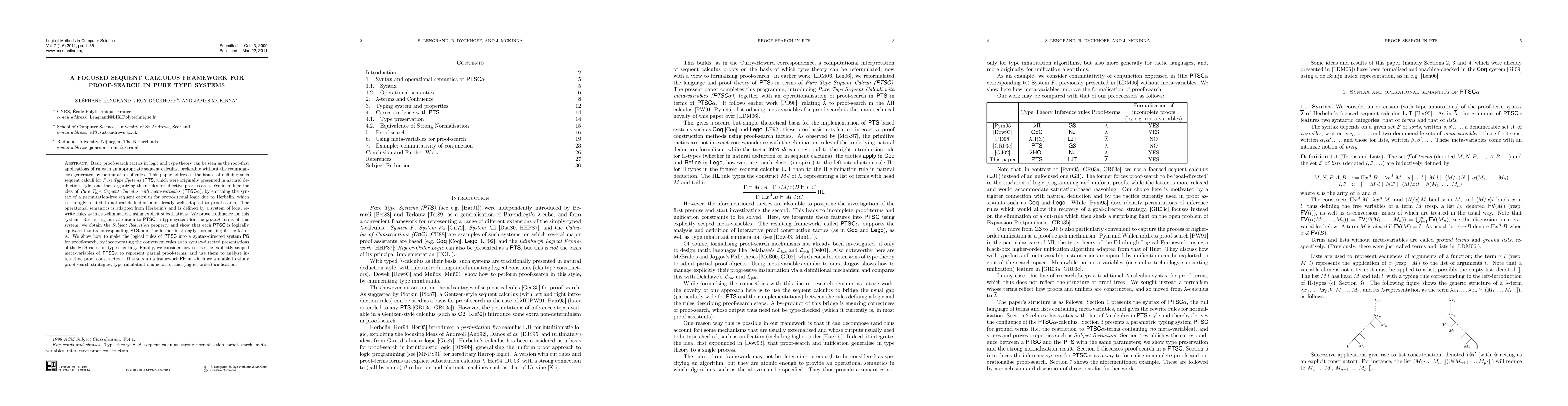 This paper introduces a permutation-free sequent calculus framework, Pure Type Sequent Calculus with meta-variables (PTSCalpha), for effective proof-search in Pure Type Systems (PTS). It establishes logical equivalence and strong normalization properties, and develops a syntax-directed system PS for interactive proof construction and proof-search strategies.